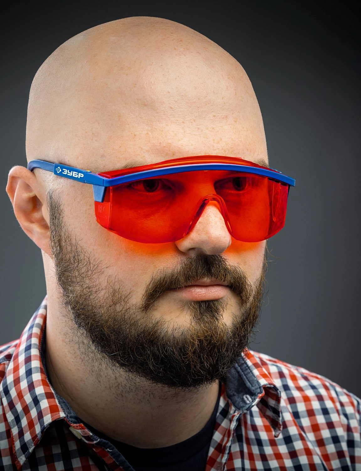 ПроизводителиОчки защитные,открытого типа, красные, стекло увеличен размера, ПРОТОН Профессионал (110483) ЗУБР