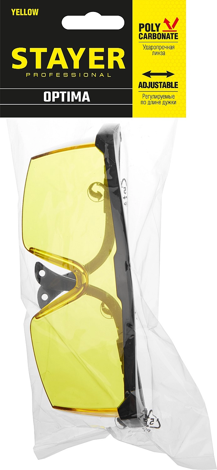 ПроизводителиОчки защитные регулируемые, поликарбонатные желтые линзы с оправой (2-110453_z01) STAYER
