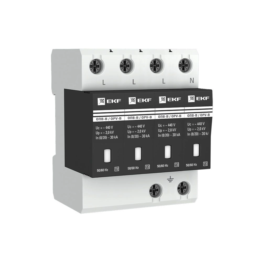 ПроизводителиОграничитель импульсных напряжений ОПВ-B/4P (400В In 30кА с сигнал. УХЛ-4) opv-b4 EKF PROxima