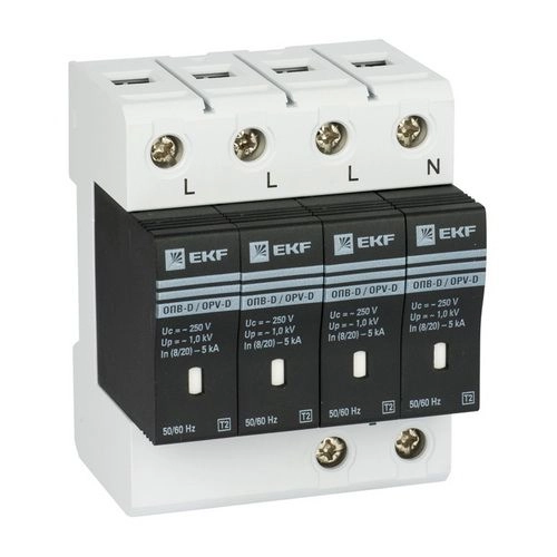 ПроизводителиОграничитель импульсных напряжений ОПВ-C/4P (400В In 20кА с сигнал. УХЛ-4) opv-c4 EKF PROxima
