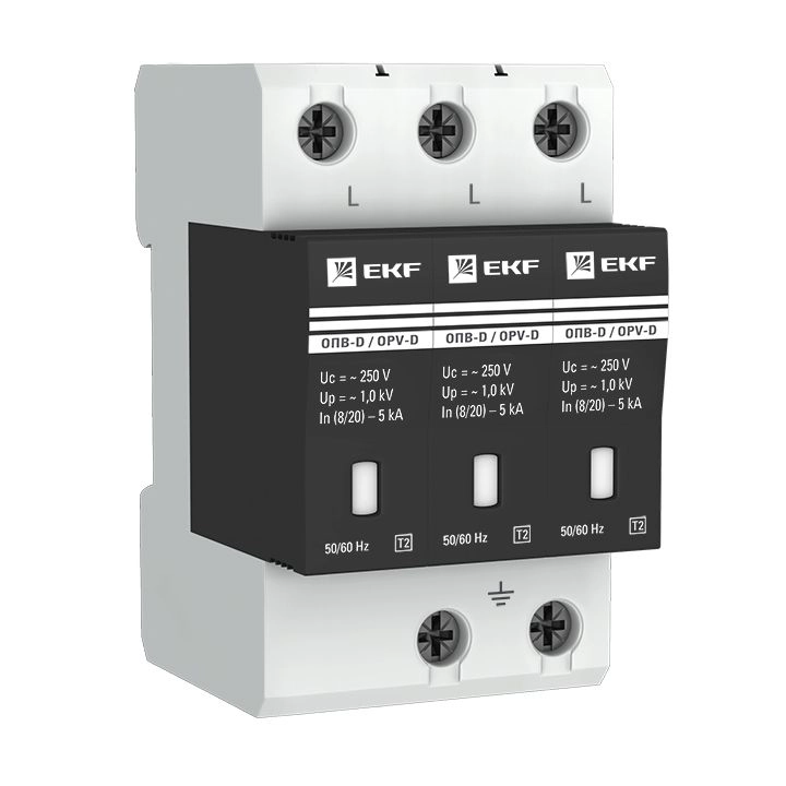 ПроизводителиОграничитель импульсных напряжений ОПВ-D/3P (230В In 5кА с сигнал. УХЛ-4) opv-d3 EKF PROxima