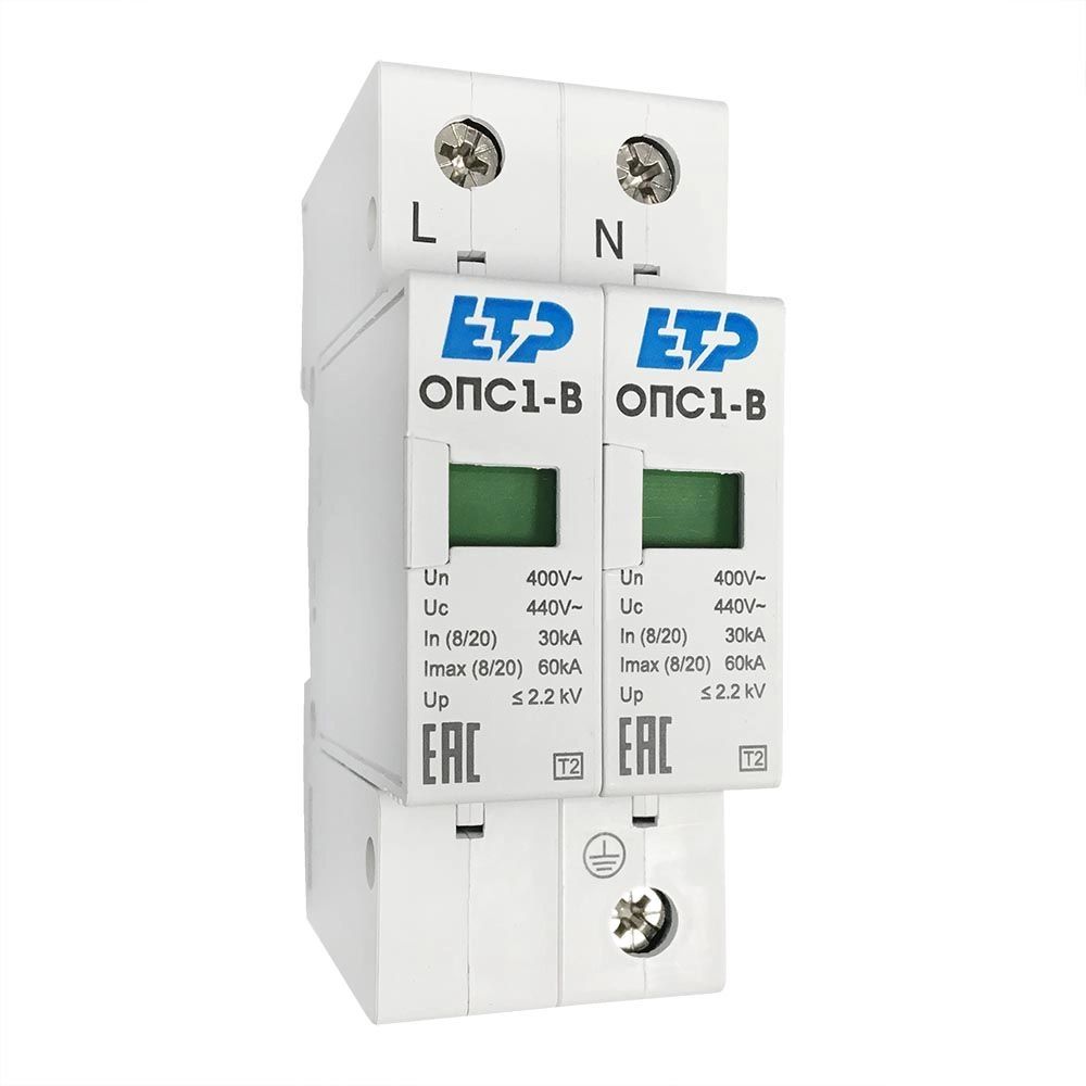 ПроизводителиОграничитель импульсных перенапряжений ОПС1-B 2P (In 30kA Un 400B Im 60kA) 16701 ETP