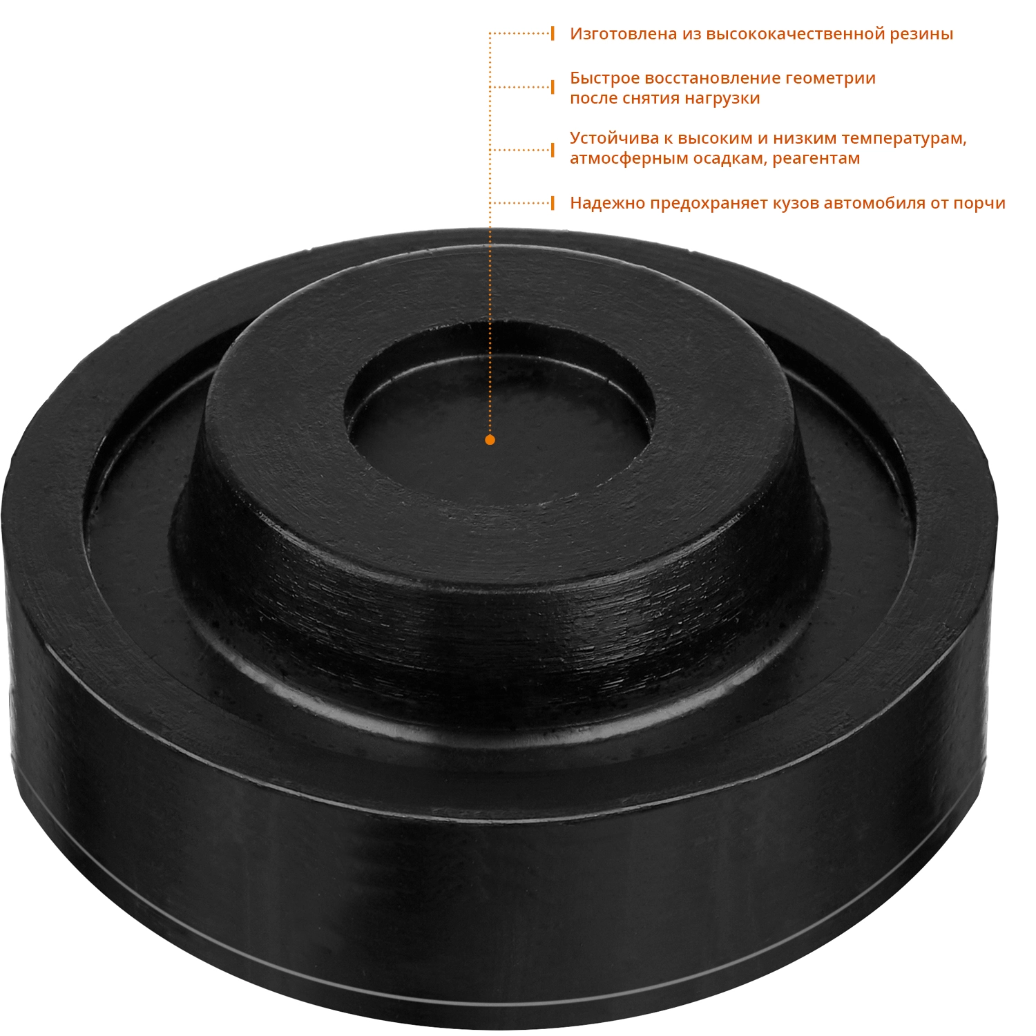 ПроизводителиОпора резиновая для домкрата РГ-37, D65 / d37 / H27 мм, "Профессинал" (43007-37) ЗУБР