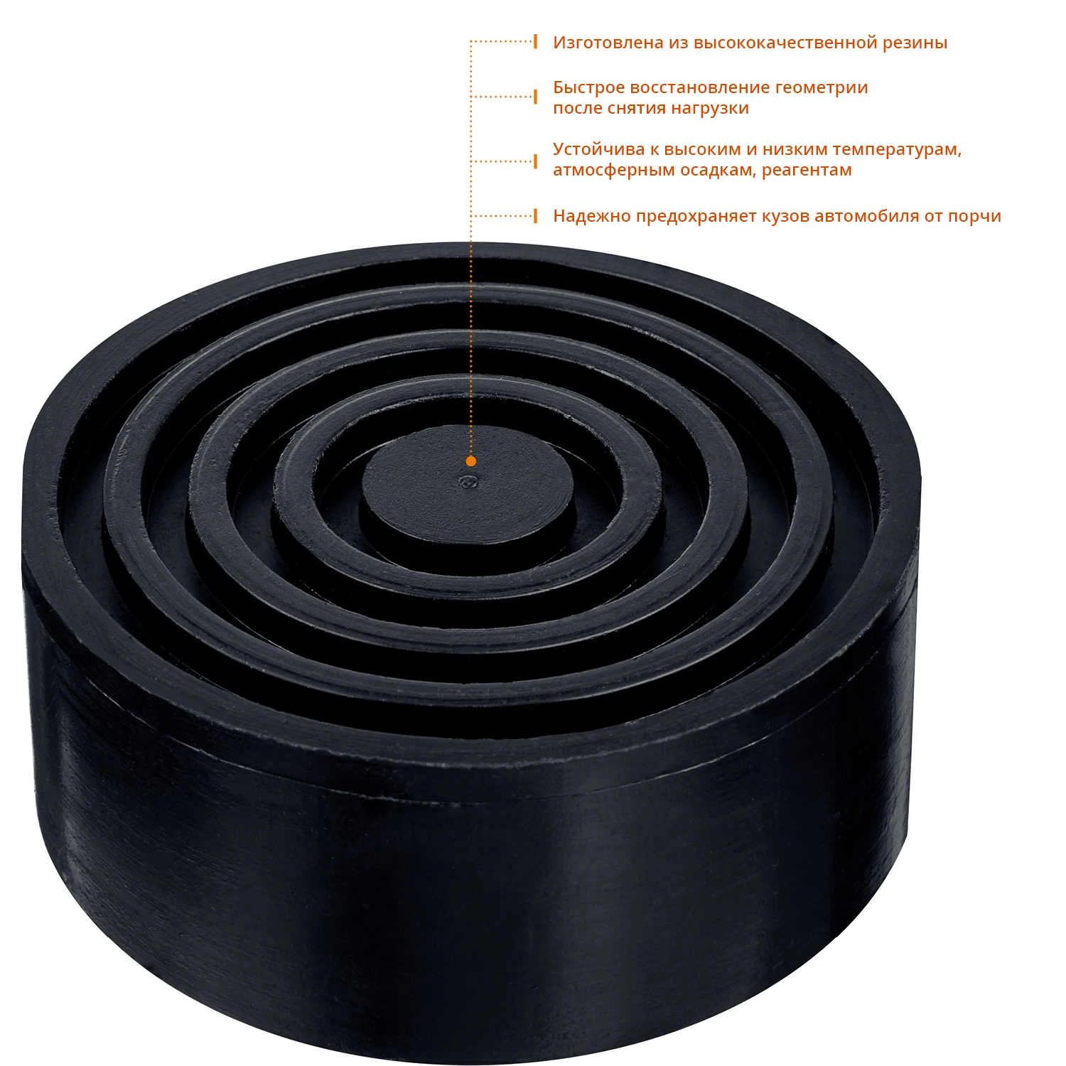 ПроизводителиОпора резиновая для домкрата РШ-45, D105 / H45 мм, "Профессионал" (43005-45) ЗУБР