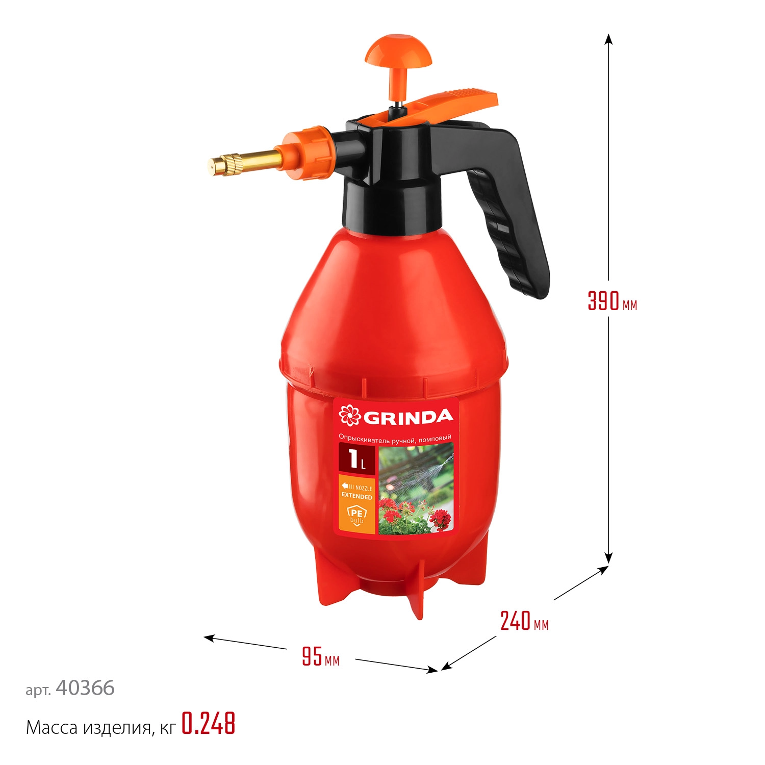 ПроизводителиОпрыскиватель 1 л, с удлинённым соплом, ручной, помповый, колба из полиэтилена (40366_z02) Grinda