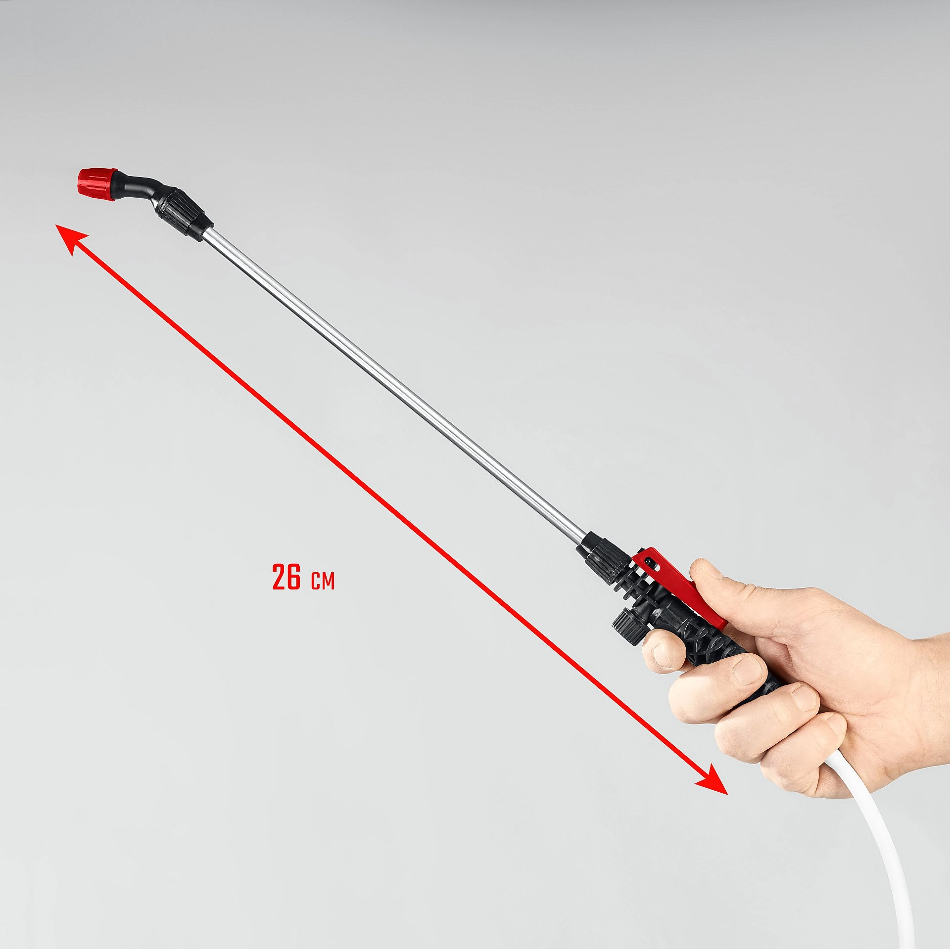 Опрыскиватель переносной GRINDA 8-425119, предназначен для работ по защите растений от вредителей и болезней. Широкая горловина, армирование шланга, удлинитель из алюминия, ремень для переноски на плече, регулировка струи, фиксатор полива, клапан сброса давления.Производитель: Крафтул И/Е Гмбх, Альтер Поствег Штр., Лоенинген, Германия