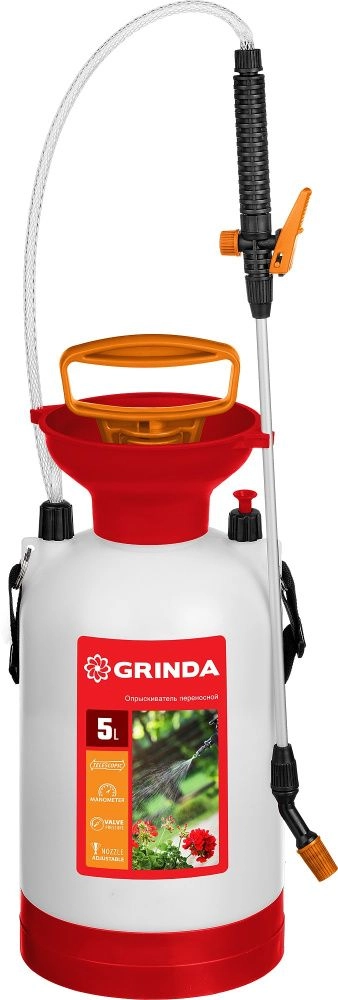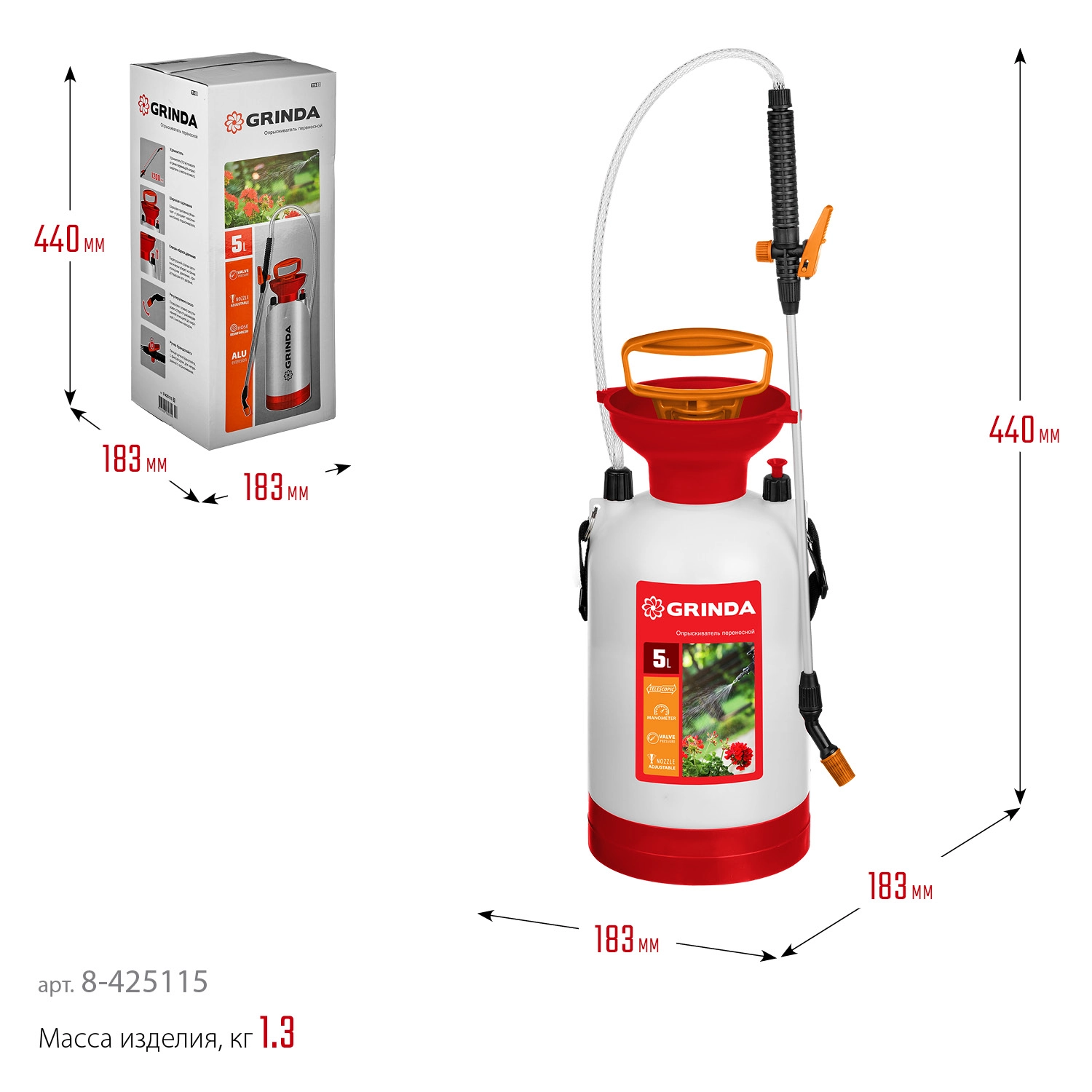 ПроизводителиОпрыскиватель 5 л, переносной, с широкой горловиной и устойчивым днищем (8-425115_z02) GRINDA
