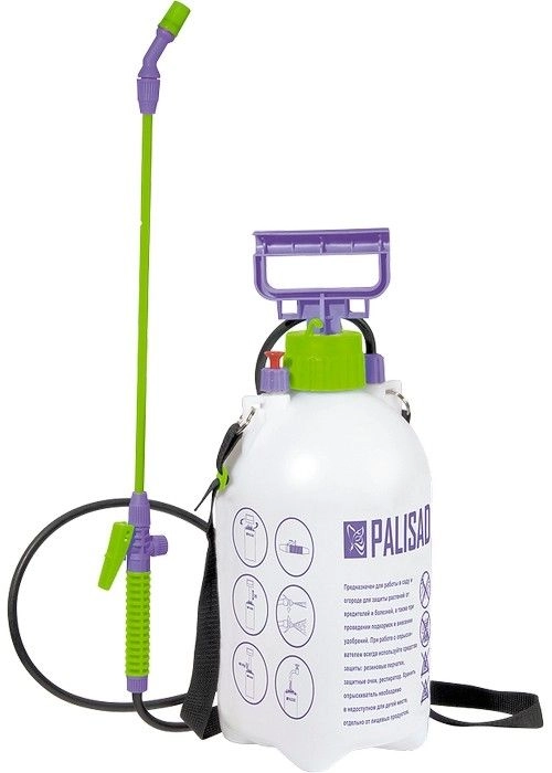 ПроизводителиОпрыскиватель 5 л, ручной, с насосом, шлангом, разбрызгивателем (64740) PALISAD