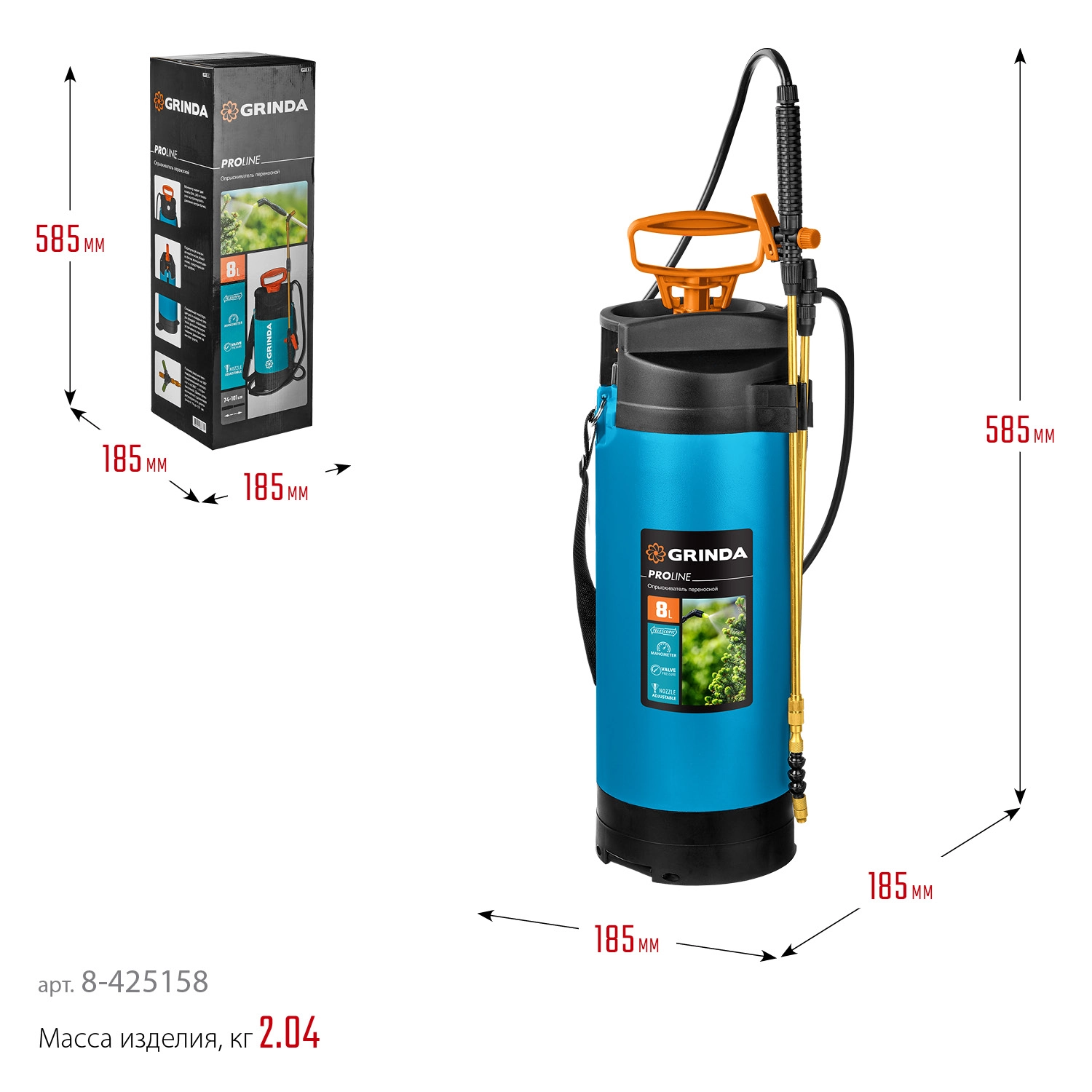 Опрыскиватель переносной GRINDA 8-425158_z02, предназначен для работ по защите растений от вредителей и болезней. Упоры для ног, манометр, армирование шланга, ремень для переноски на плече, удлинитель из латуни, длина удлинителя 77-108 см, регулировка струи, клапан сброса давления.Производитель: Крафтул И/Е Гмбх, Альтер Поствег Штр., Лоенинген, Германия