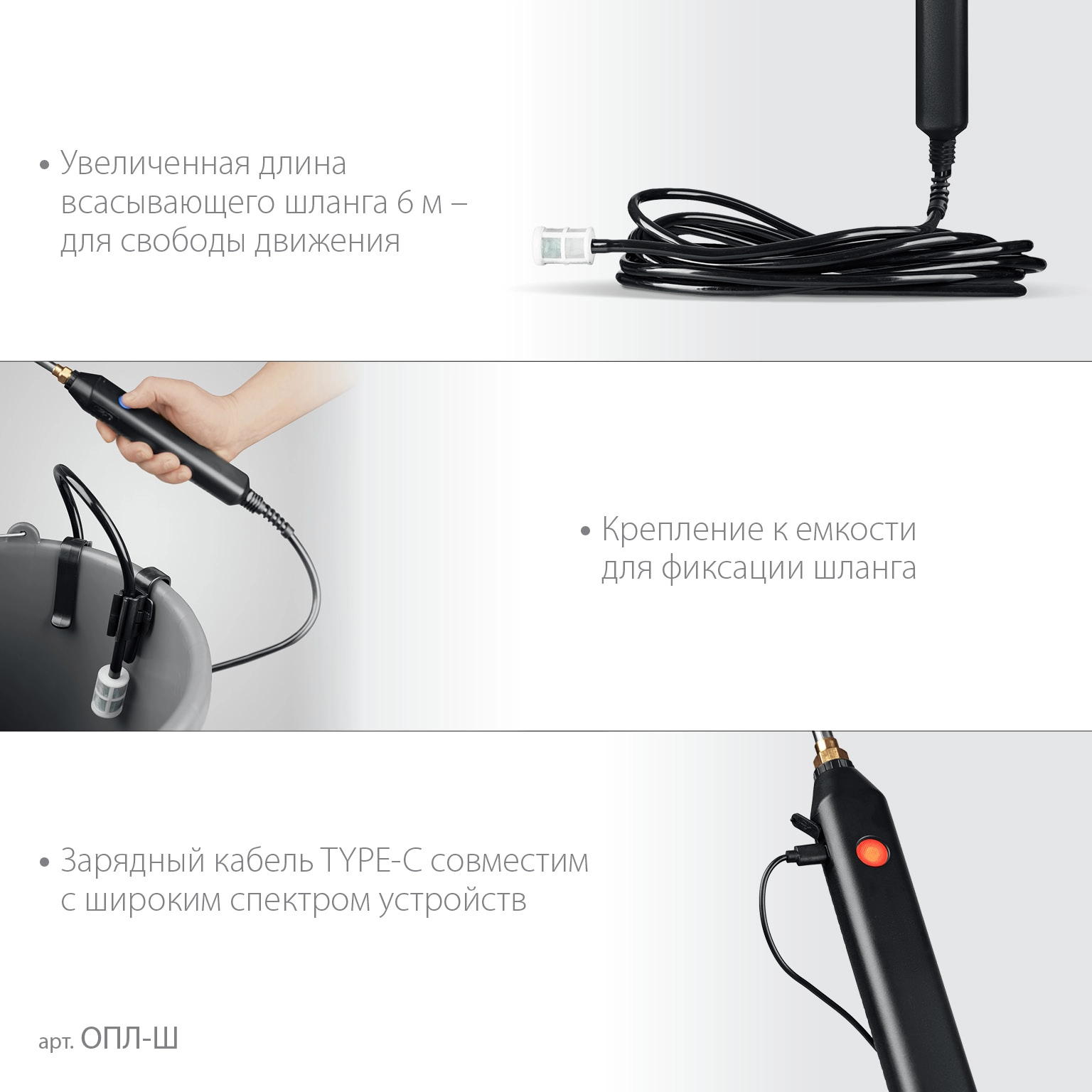 Увеличенная длина гибкого шланга для свободы движения