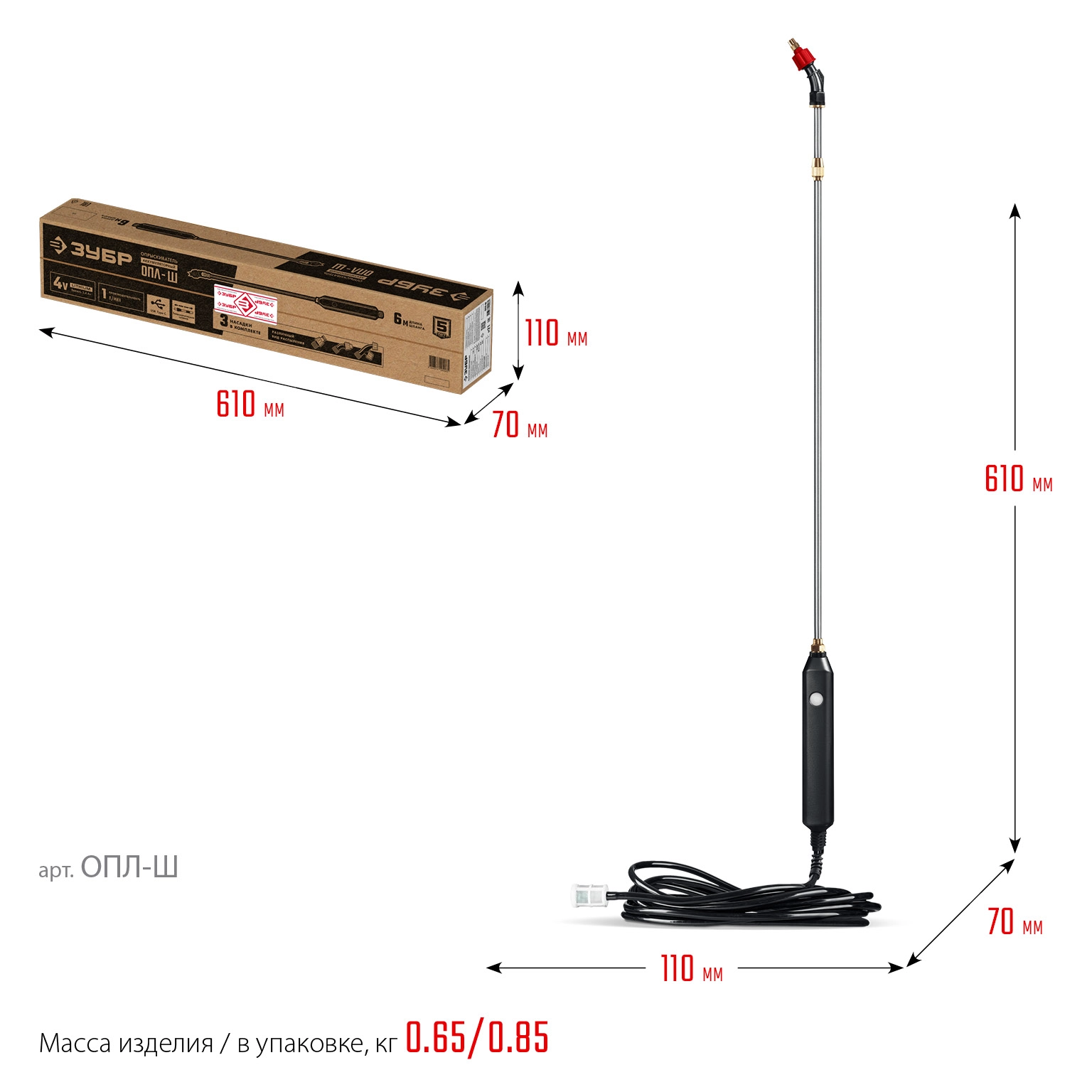ПроизводителиОпрыскиватель аккумуляторный без бака 5 л (ОПЛ-Ш) ЗУБР