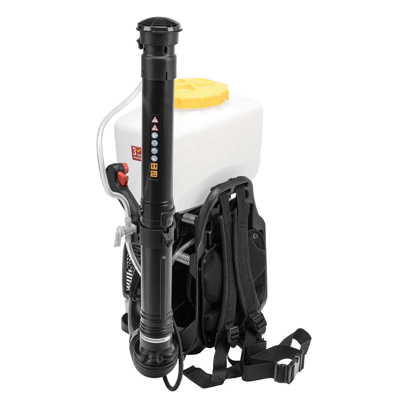 Бензиновый опрыскиватель Denzel GS-63-PRO 65302 с двигателем объемом 63 см3 и баком на 25 л предназначен для распыления жидких, порошковых и гранулированных веществ. Используется для ухода за растениями: обработки от насекомых и вредителей, внесения подкормки, профилактики и лечения заболеваний. Двигатель мощностью 3,6 л.с. обеспечивает дальность распыления до 20 м, поэтому опрыскиватель подходит для обработки участков большой площади. Также он может работать в режиме воздуходувки, позволяя убирать с дорожек опавшую листву и свежевыпавший снег.