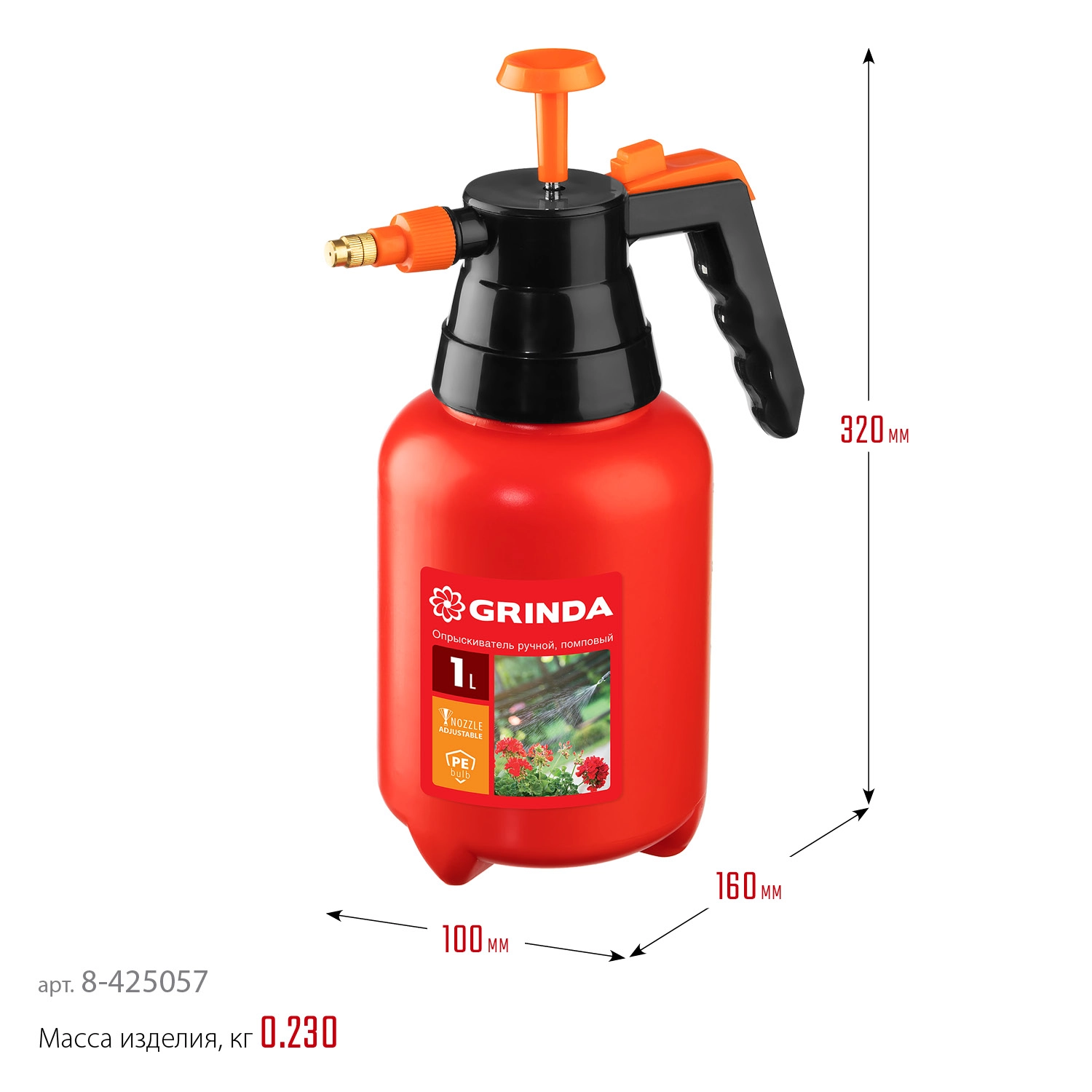 ПроизводителиОпрыскиватель помповый, объем 1 л, ручной (8-425057_z02) GRINDA