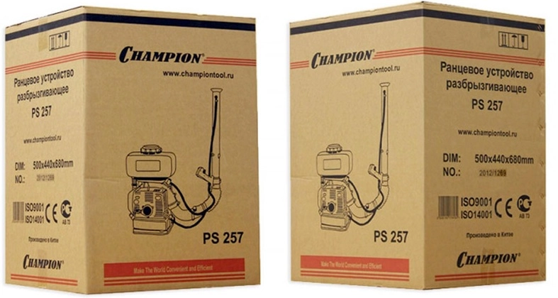 ПроизводителиОпрыскиватель-распылитель CHAMPION PS257 (2,5кВт 56,5см? 15м бак 14л 0,14-3,03 л/мин 10,5кг)