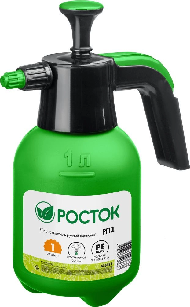 ПроизводителиОпрыскиватель ручной 1 л, колба из полиэтилена (425071) РОСТОК