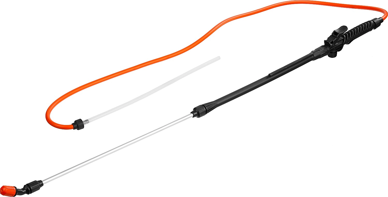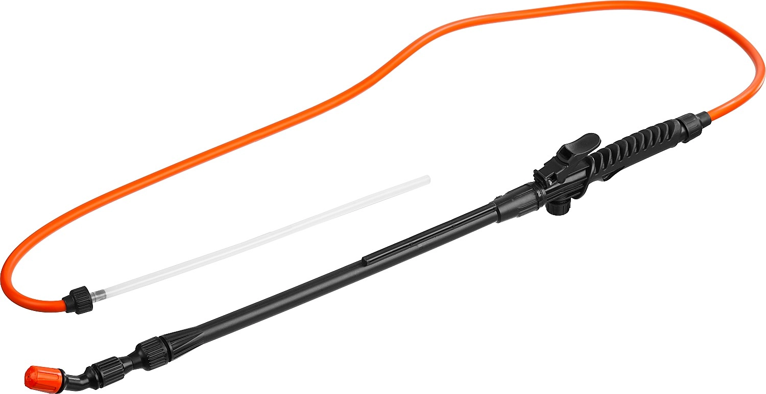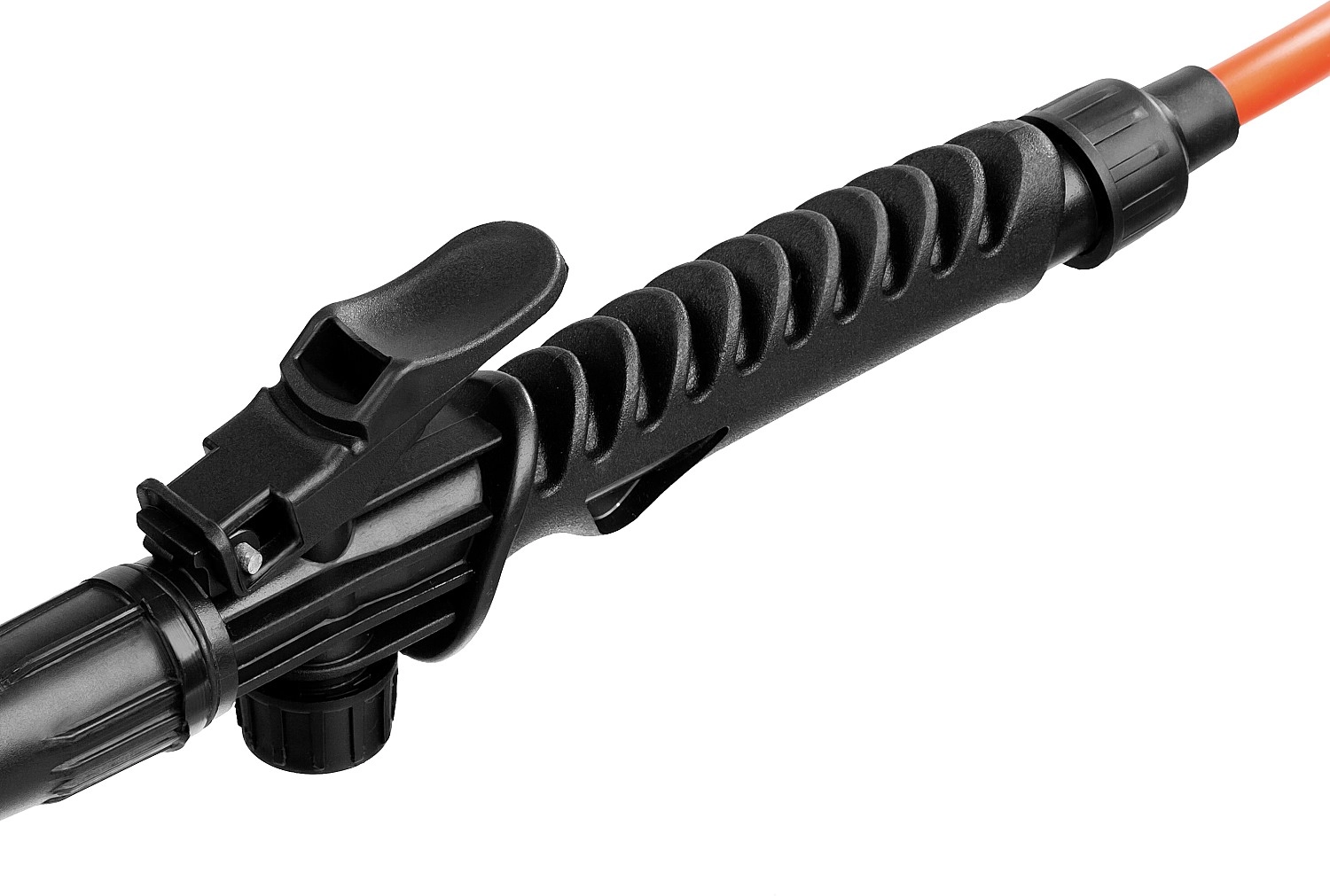 - Алюминиевый телескопический брандспойт позволяет обрабатывать не только небольшие растения, но и кустарники, деревья высотой до 3 м.