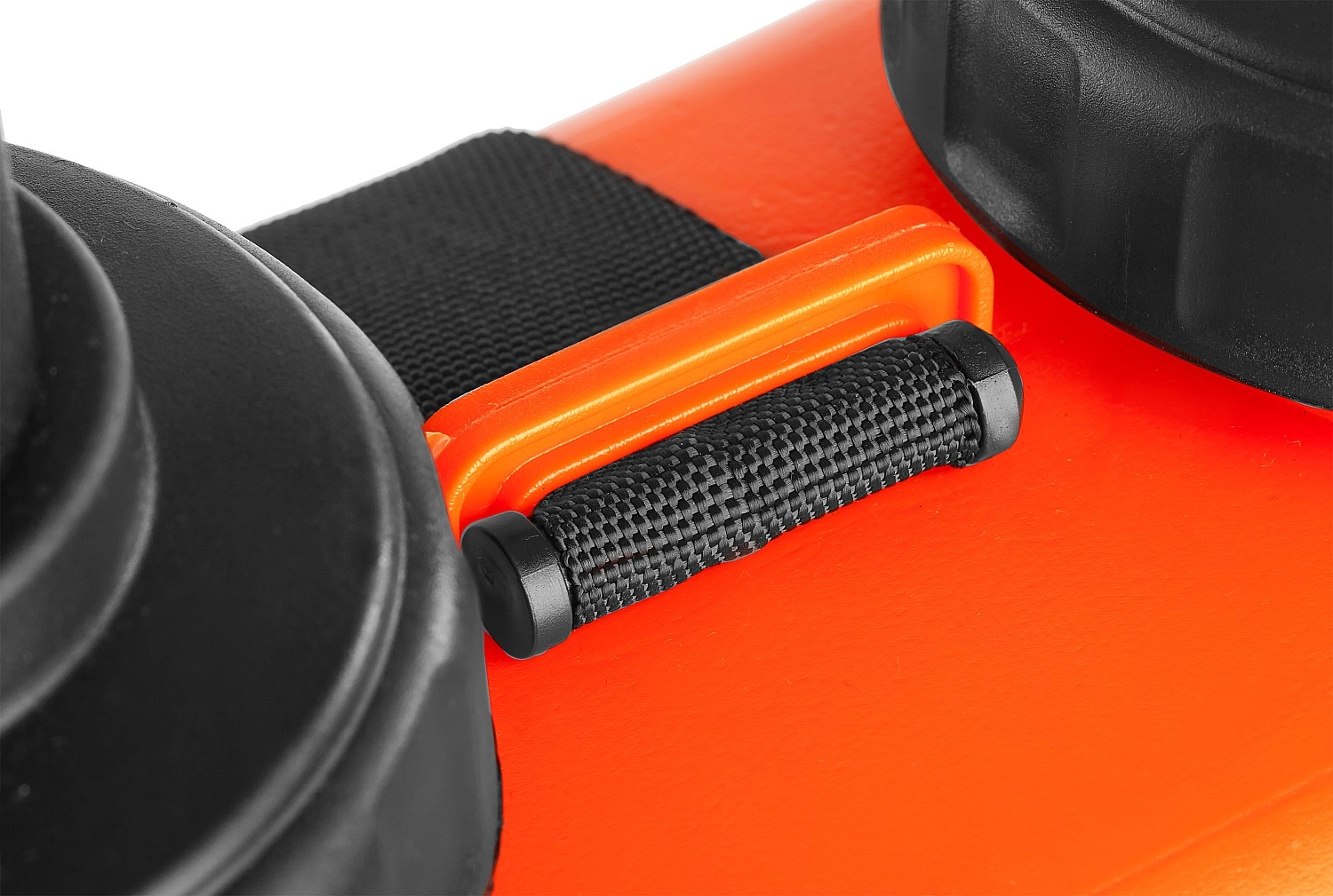 - Специальная конструкция рычага насоса позволяет поддерживать давление в бачке опрыскивателя, не снимая его с плеча.
