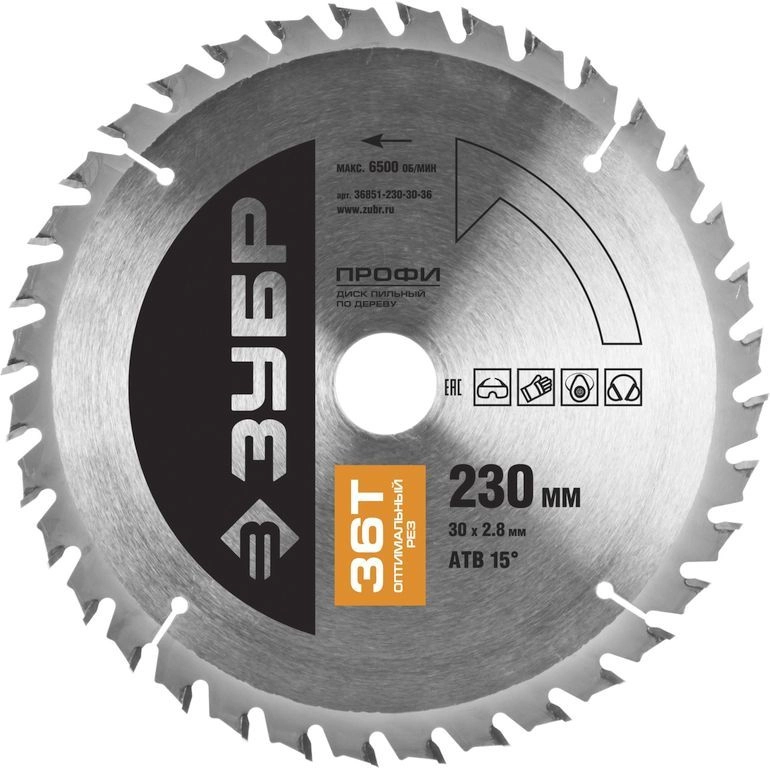 ПроизводителиДиск пильный 230х30х36 по дереву "Оптимальный рез" (36851-230-30-36) ЗУБР