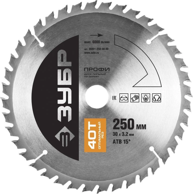 ПроизводителиДиск пильный 250х30х40 по дереву "Оптимальный рез" (36851-250-30-40) ЗУБР