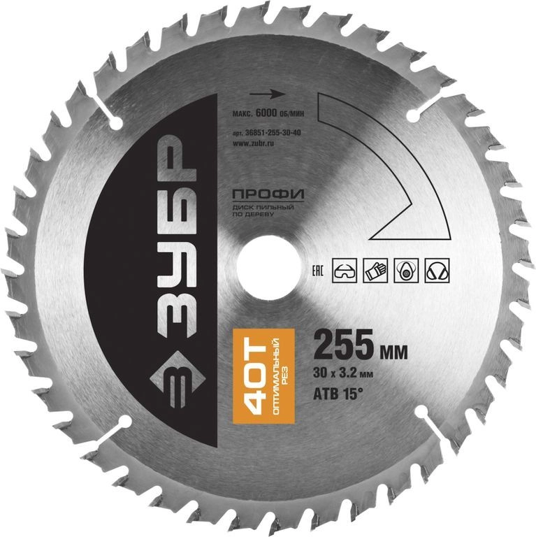 ПроизводителиДиск пильный 255х30х40 по дереву "Оптимальный рез" (36851-255-30-40) ЗУБР
