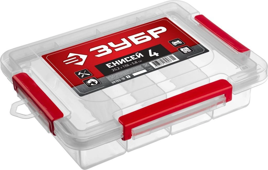 ПроизводителиОрганайзер пластиковый 252 х 176 х 58 мм, (10″), с ячейками "ЕНИСЕЙ-4" (38193-10_z01) ЗУБР
