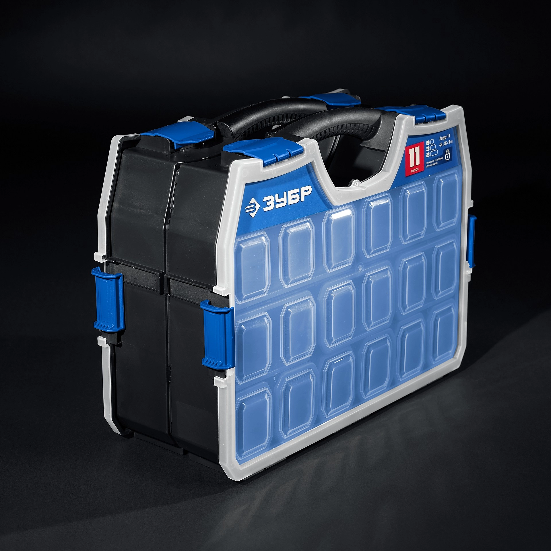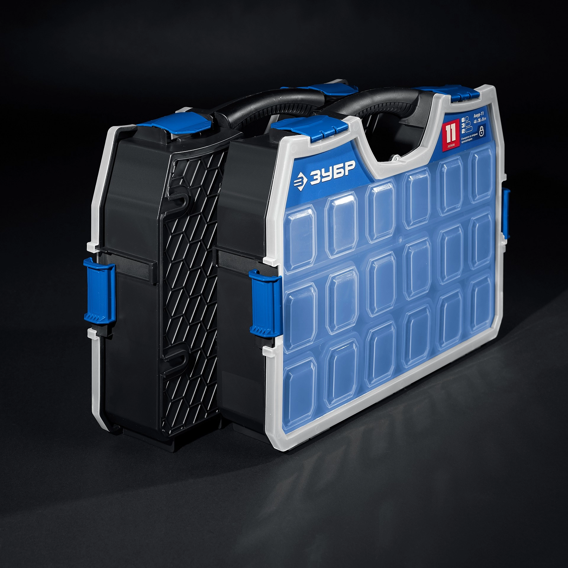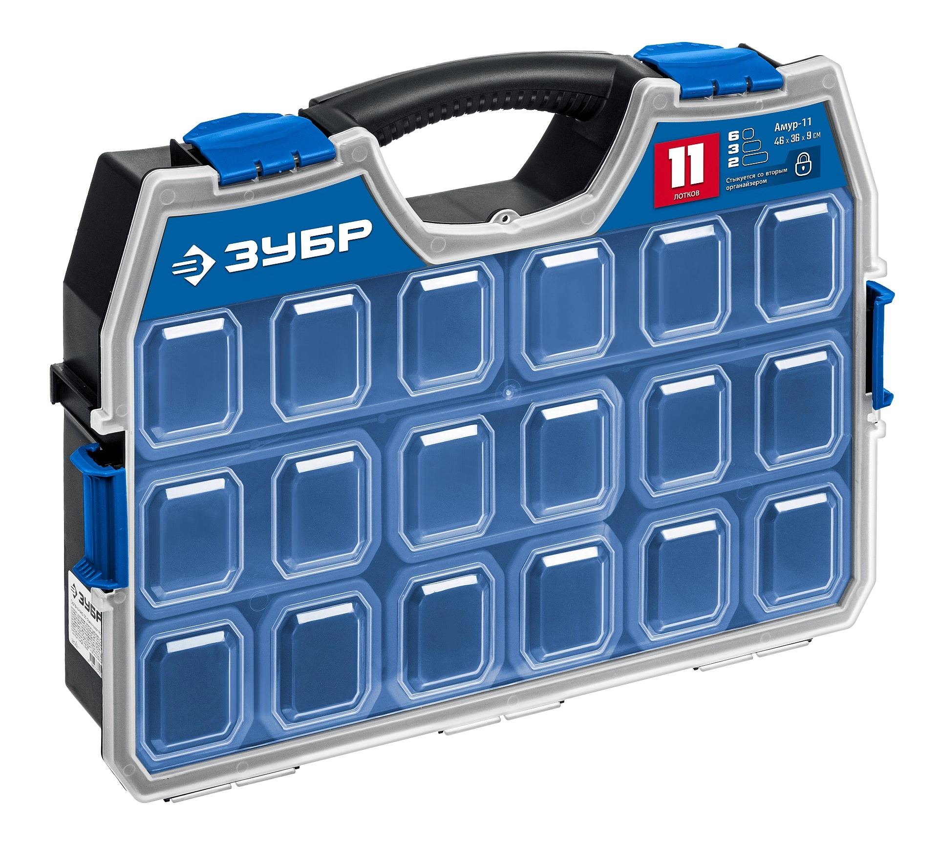 ПроизводителиОрганайзер пластиковый со съемными лотками, 462х365х92мм, АМУР-11 (38042-11) ЗУБР