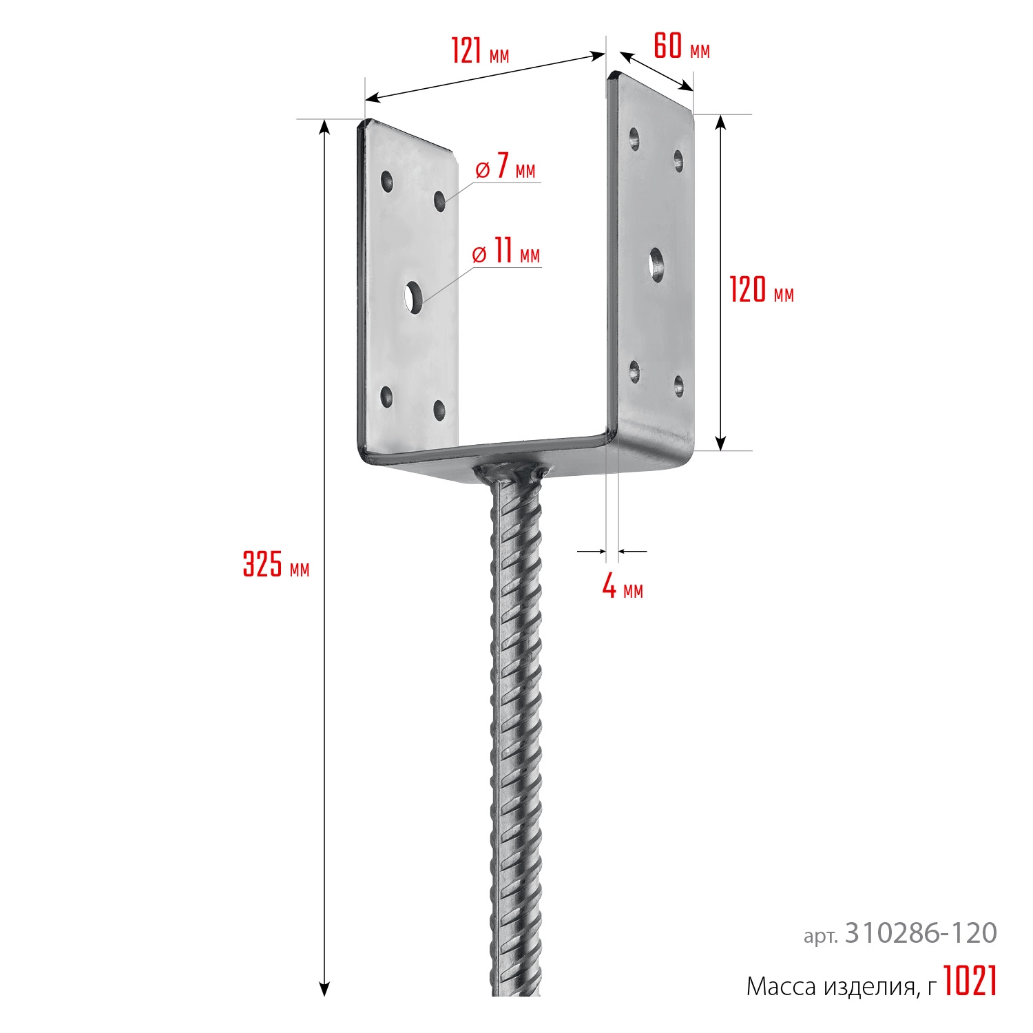 ПроизводителиОснование столба U-образное 121 x 120 x 60 мм (310286-120) ЗУБР