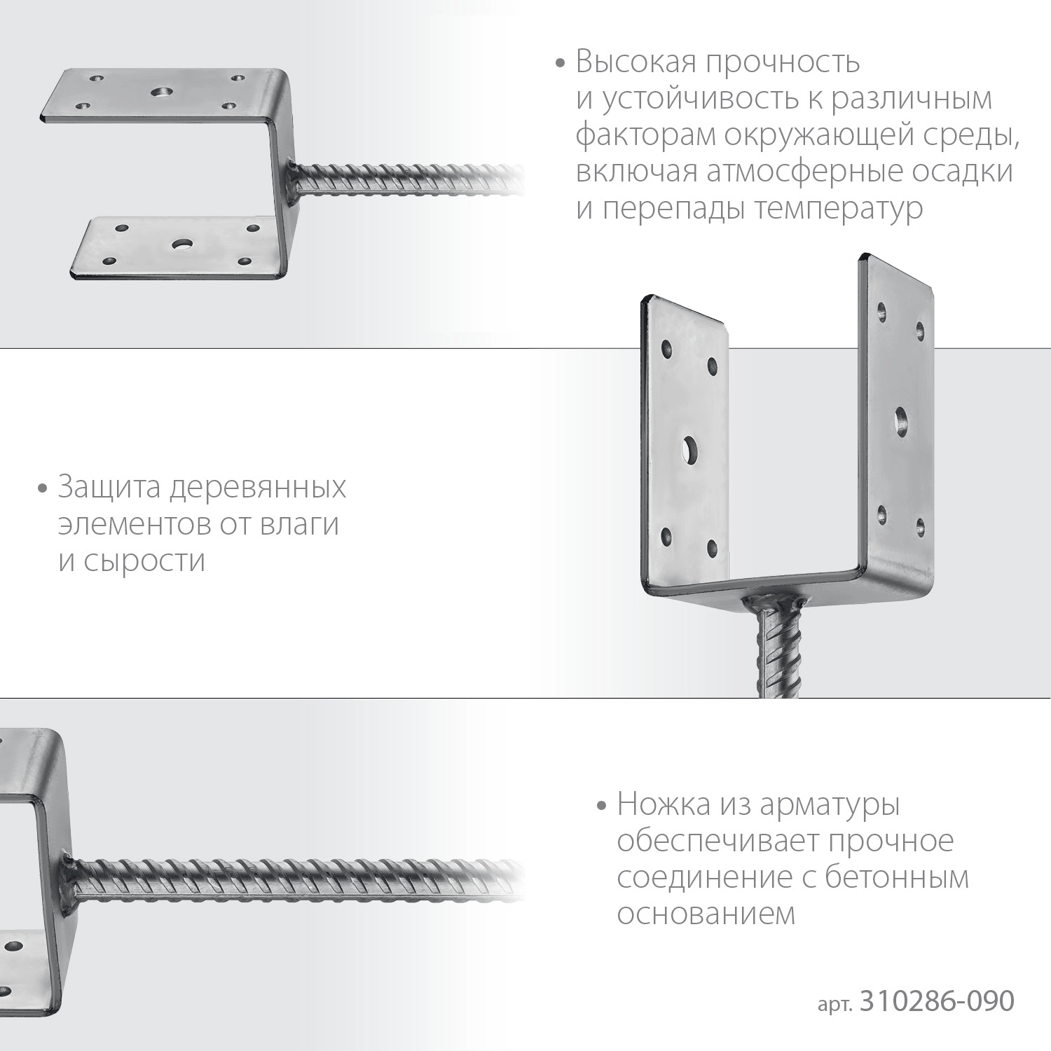- Ножка из арматуры обеспечивает прочное соединение с бетонным основанием