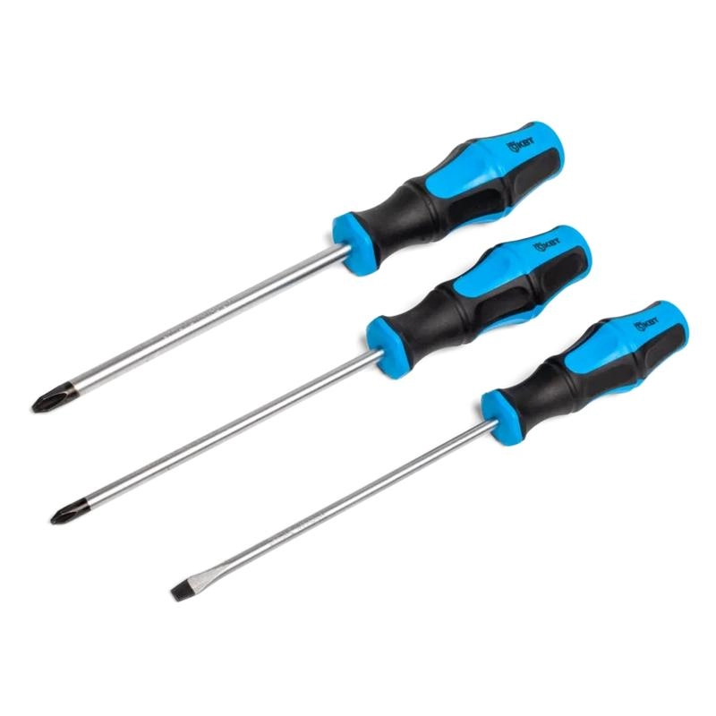 Особенности: Материал стержня: хром-ванадиевая сталь Намагниченный вороненый наконечник Двухкомпонентная анатомическая рукоятка с выемками под пальцы для удобства работы Специальная форма рукоятки не позволяет инструменту скатываться с наклонной поверхности Маркировка на торце рукоятки с обозначением типа профилей Отверстие для подвешивания Характеристики