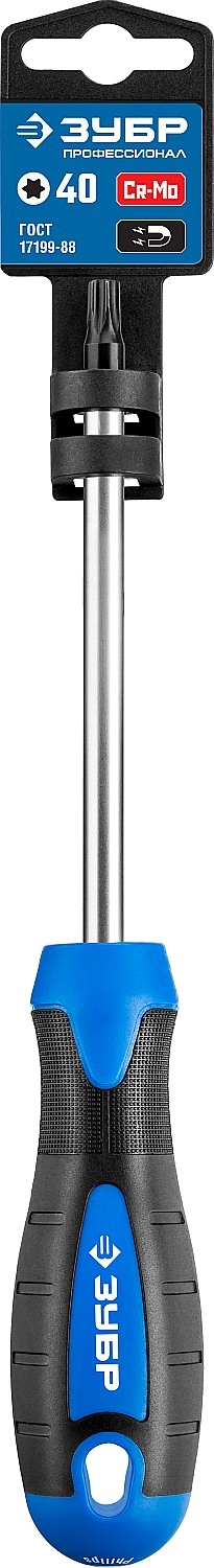 ПроизводителиОтвертка слесарная, Cr-Mo сталь, 2к рукоятка, магнитный наконечник, TX40 x 125 мм, ЗУБР "ПРОФЕССИОНА