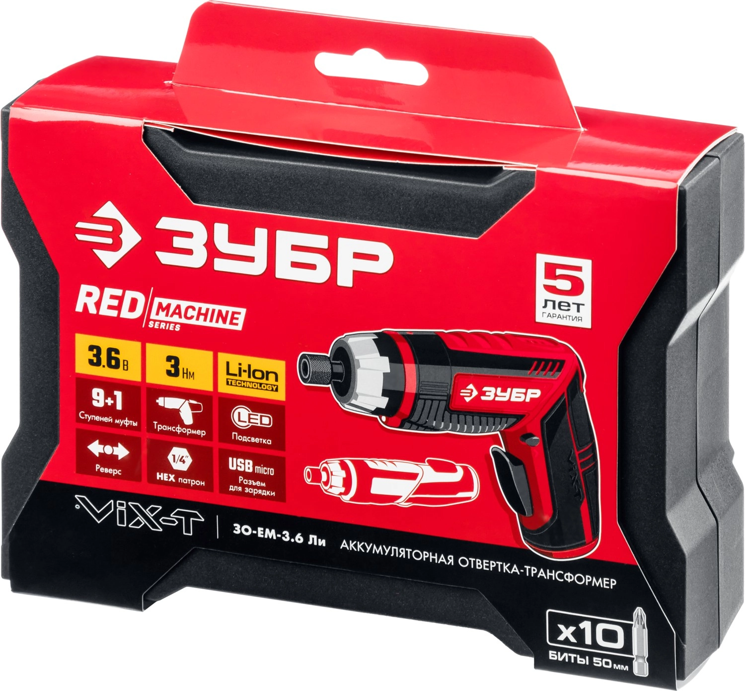 ПроизводителиОтвертка-трансформер аккум. ViX-T ЗО-ЕМ-3.6 Ли (3.6 В, 3 Нм, 10 бит, кор.) ЗУБР