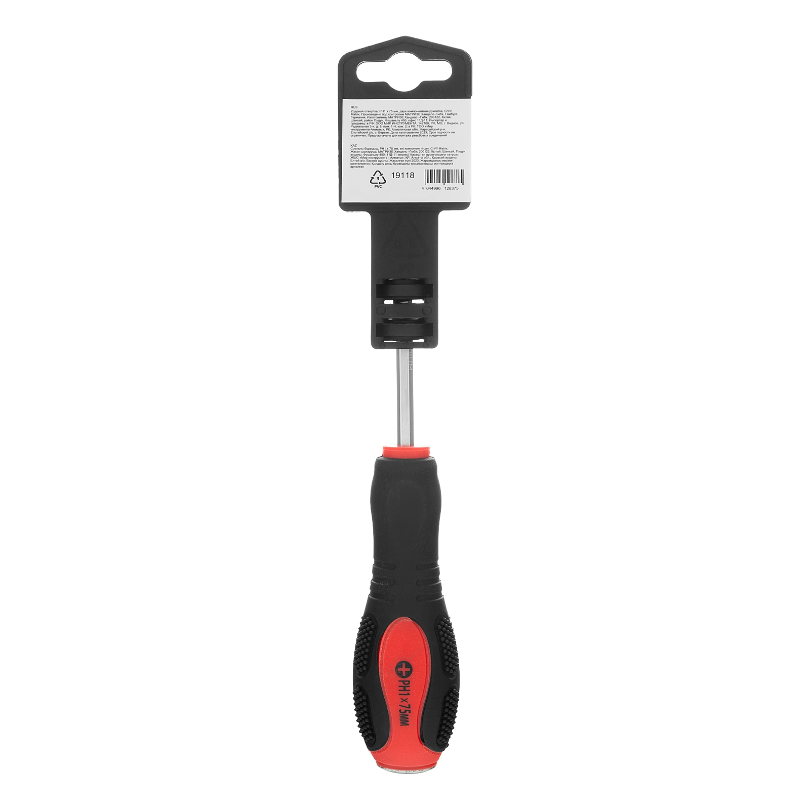 Ударная отвертка Matrix 19118, PH1 x 75 мм, с двухкомпонентной рукояткой, из стали CrV, оборудована металлическим затыльником для работы с молотком или киянкой. Предназначена для монтажа и извлечения крепежа типа Phillips, оптимально подходит для демонтажа заржавевшего или перетянутого крепежа. Отвертка профессионального класса станет незаменимым помощником на строительной площадке, в мастерской, в гараже, дома. Стержень длиной 75 мм позволяет производить работы с крепежом на поверхности и в углублениях.Производитель: ООО "Мир инструмента", Россия