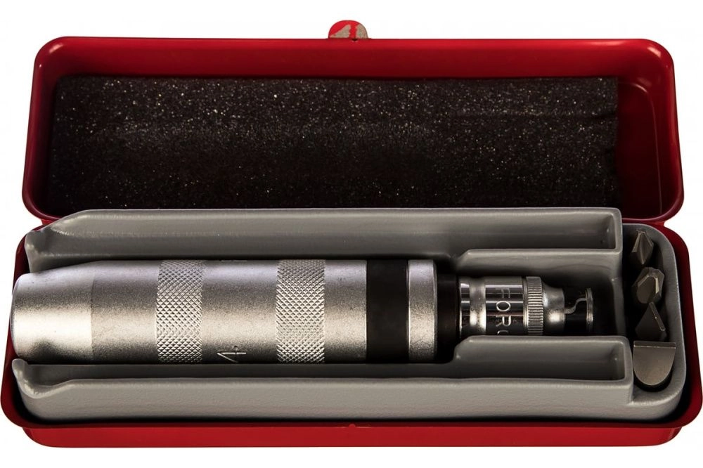 Ударная отвертка с наконечниками FORCE 6 предметов 5064 служит для откручивания сильно закрученных винтов при помощи ударов по обратной стороне отвертки. Комплект поставляется в компактном пластиковом кейсе. В наборе идет 4 биты с посадочным размером 5/16". Изделия комплекта изготовлены из прочной стали.Производитель: ФОРС Шянг Юн Тоолс Цо., Лтд. Но.161, Ситоу Рд., Шенганг Дист., Таичунг Циты, Р.О.Ц., 42953, Тайвань