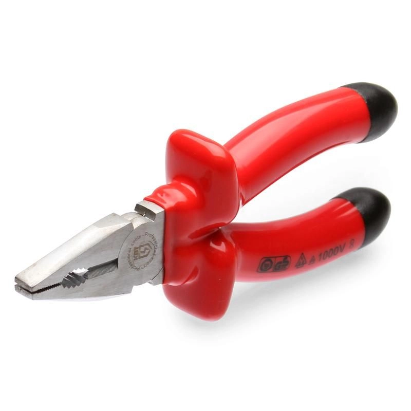 Характеристики КВТ 87100: Для работы под напряжением до 1000 В Материал рукояток: двухслойный диэлектрический пластизоль. Внутренняя изоляция – желтого цвета, внешний слой изоляции – красного цвета Зоны захвата для плоских и круглых деталей Режущие кромки дополнительно закалены токами высокой частоты. HRC 62 Резка твердой стальной проволоки до 1.5 мм Материал рабочей части: хром-ванадиевая сталь Обработка поверхности: матовое никелирование Длина: 200 мм Вес: 396 г Характеристики