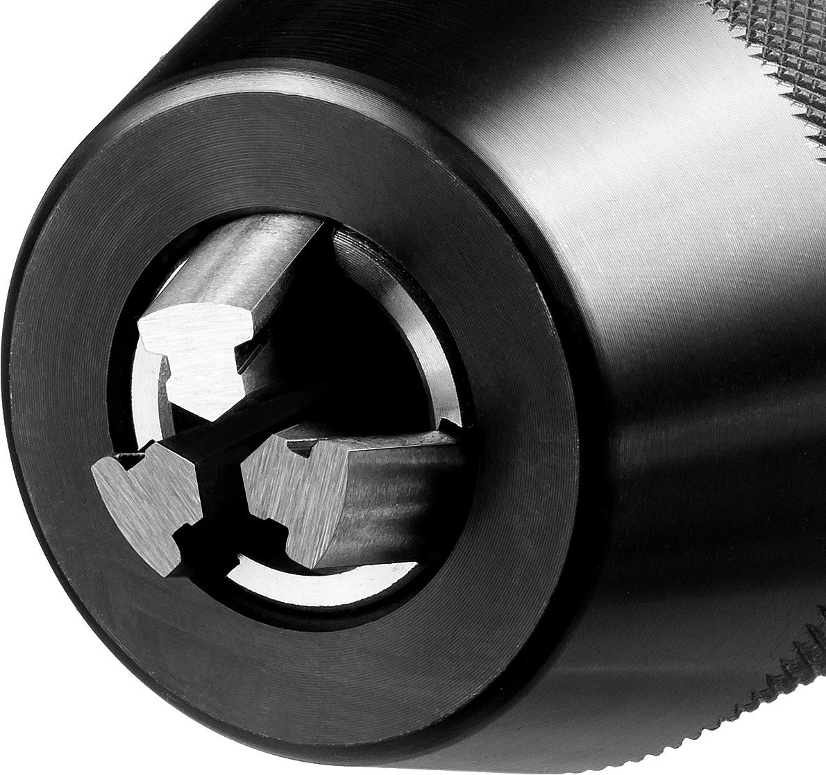 Посадка на конус Морзе обеспечивает быстрый монтаж патрона на рабочем валу сверлильного станка. Механизм быстрой фиксации сверла избавляет от необходимости изпользовать специнстумент.