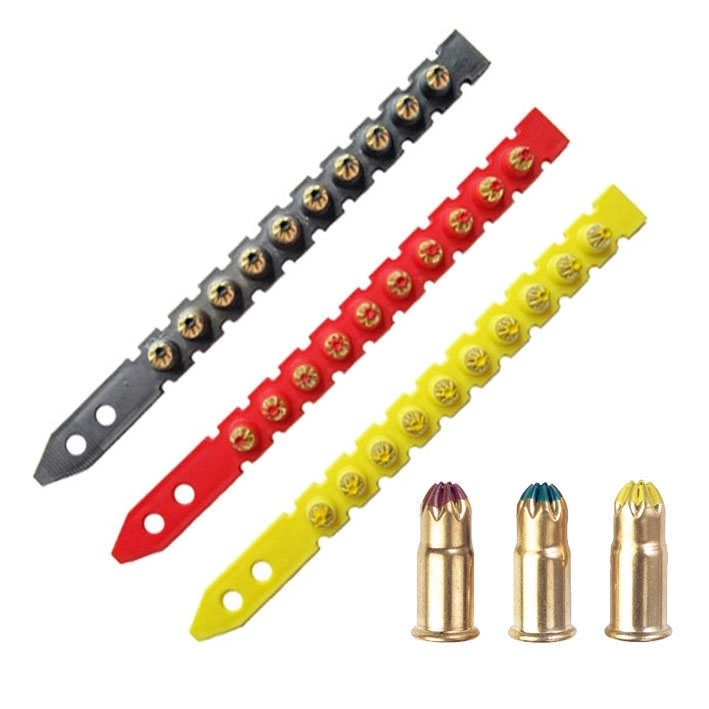 В ленте 10 патронов.Производитель: "SICHUAN NANSHAN POWDER ACTUATED FASTENING SYSTEM CO. LTD.", NANXI COUNTY, SICHUAN PROVINCE, CHINA