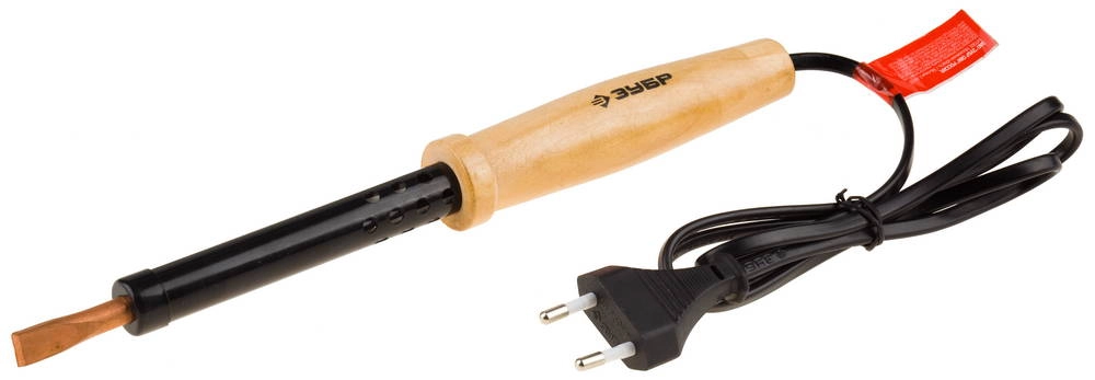 Электропаяльник непрерывного нагрева ЗУБР 55405-100_z01, предназначен для пайки медных проводников сечением до 2 мм², отпайки и лужения металлических элементов толщиной до 1 мм.