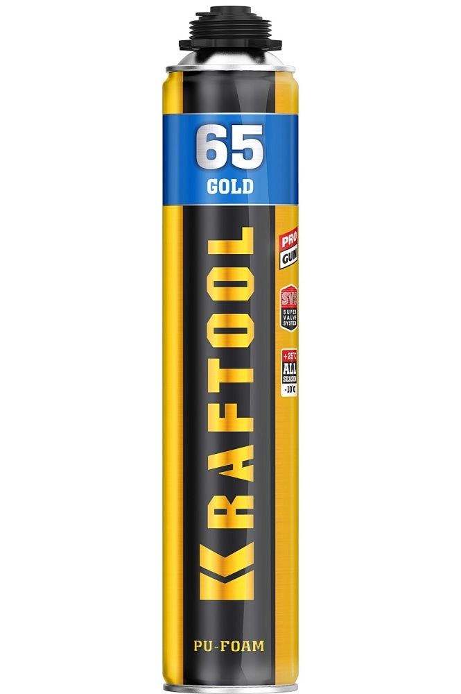 ПроизводителиПена монтажная с увелич. выходом, всесезонная, 850мл, GOLD 65 (41194) KRAFTOOL