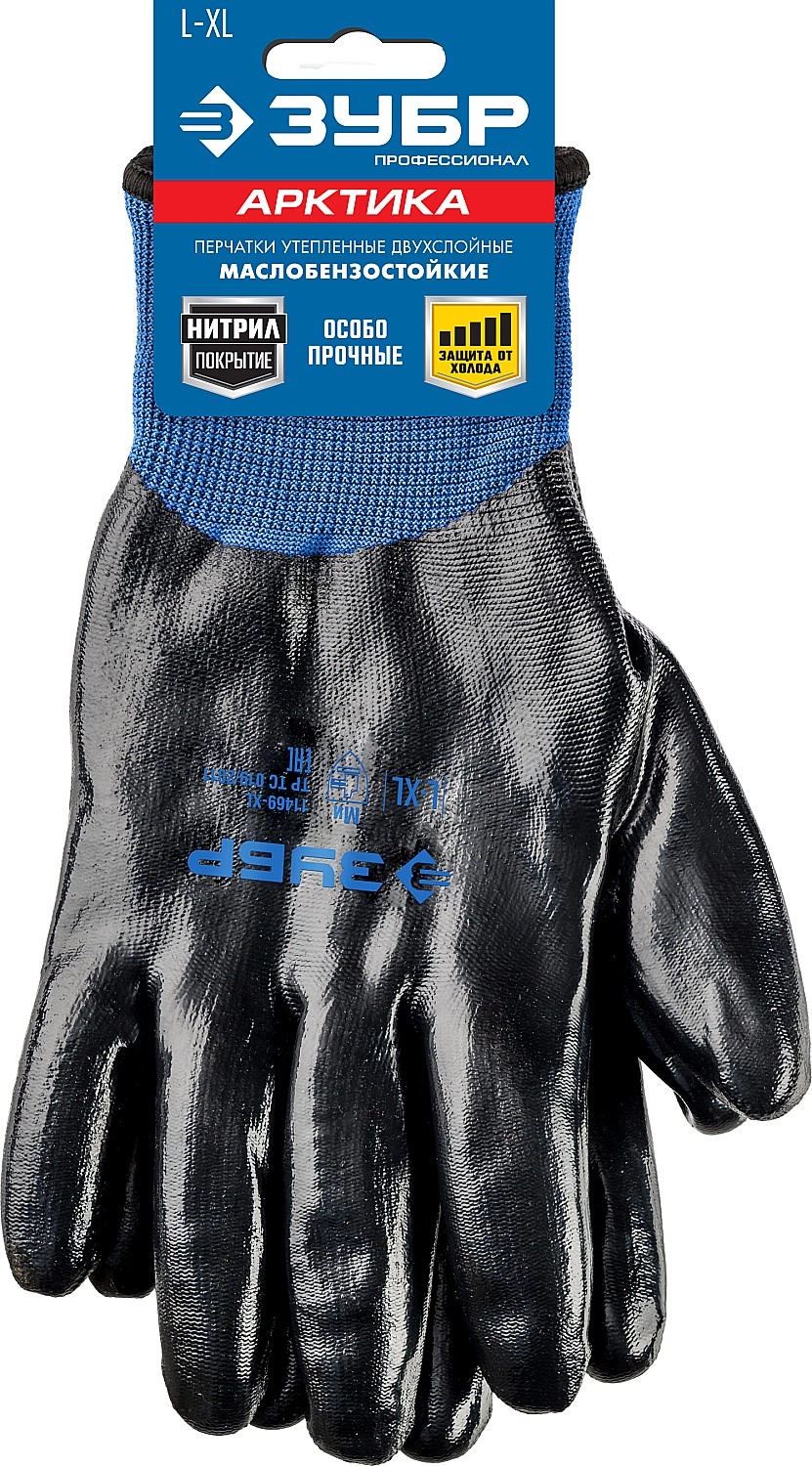 ПроизводителиПерчатки двухслойные из акрила и нейлона, нитрил. облив, утеплённые, размер L-XL (11469-XL) ЗУБР