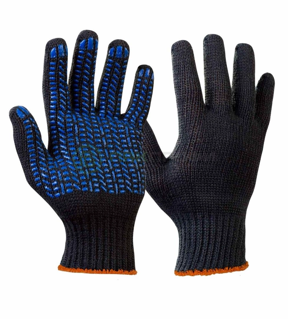 ПВХ покрытие препятствует быстрому истиранию, увеличивая срок эксплуатации вязаной перчатки
