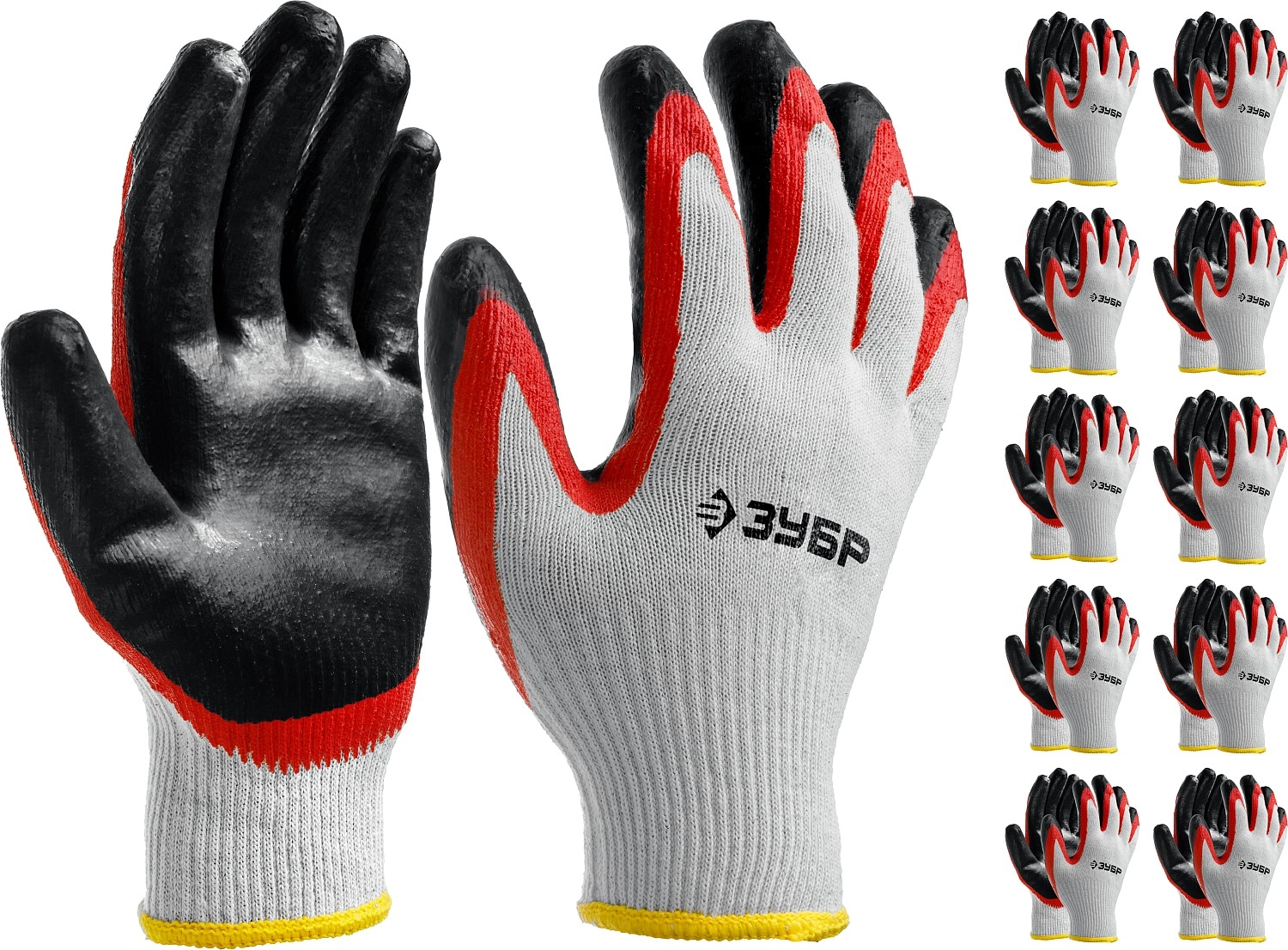 ПроизводителиПерчатки х/б с двойным латексным обливом, 13 класс, размер L-XL, 10 пар (11459-K10) ЗУБР