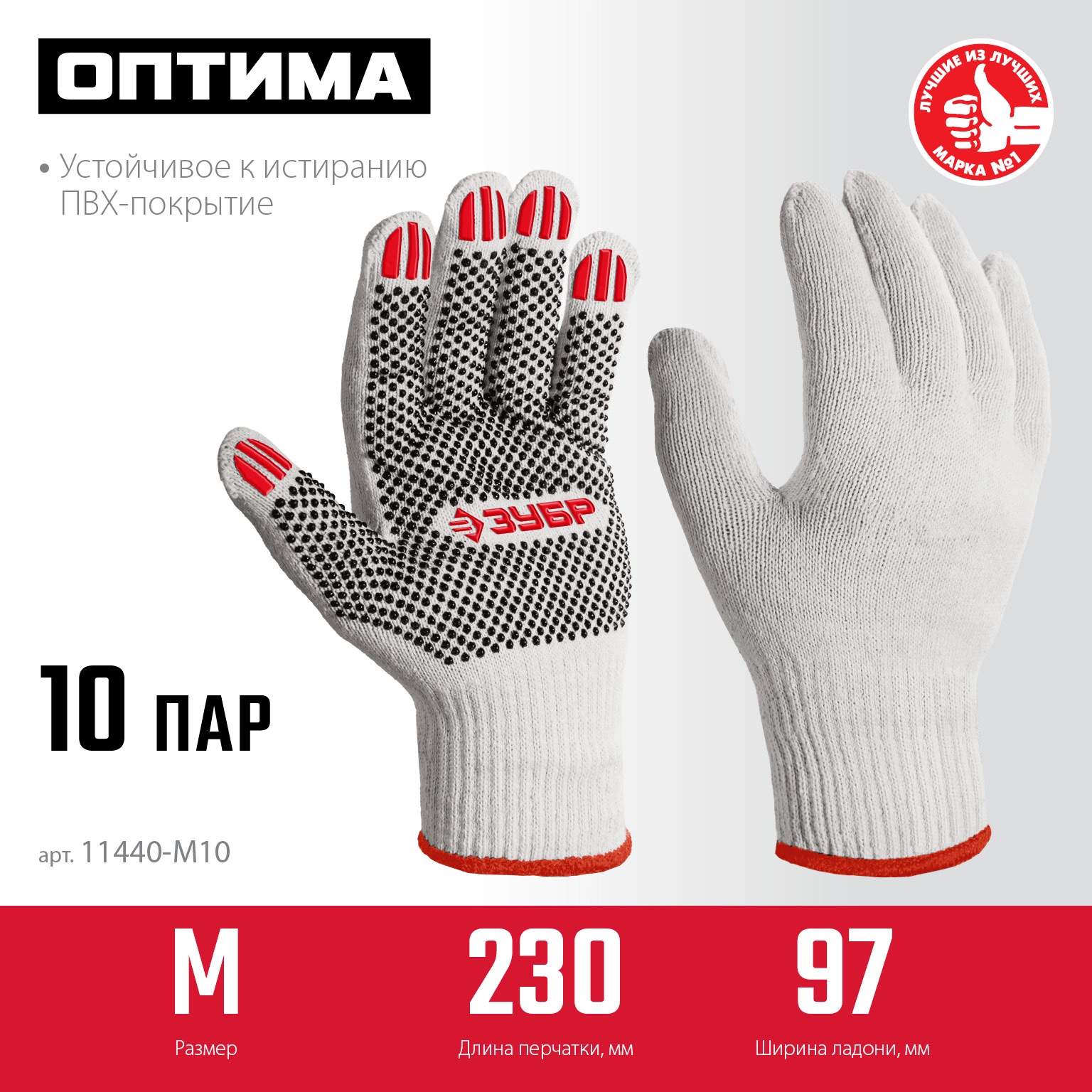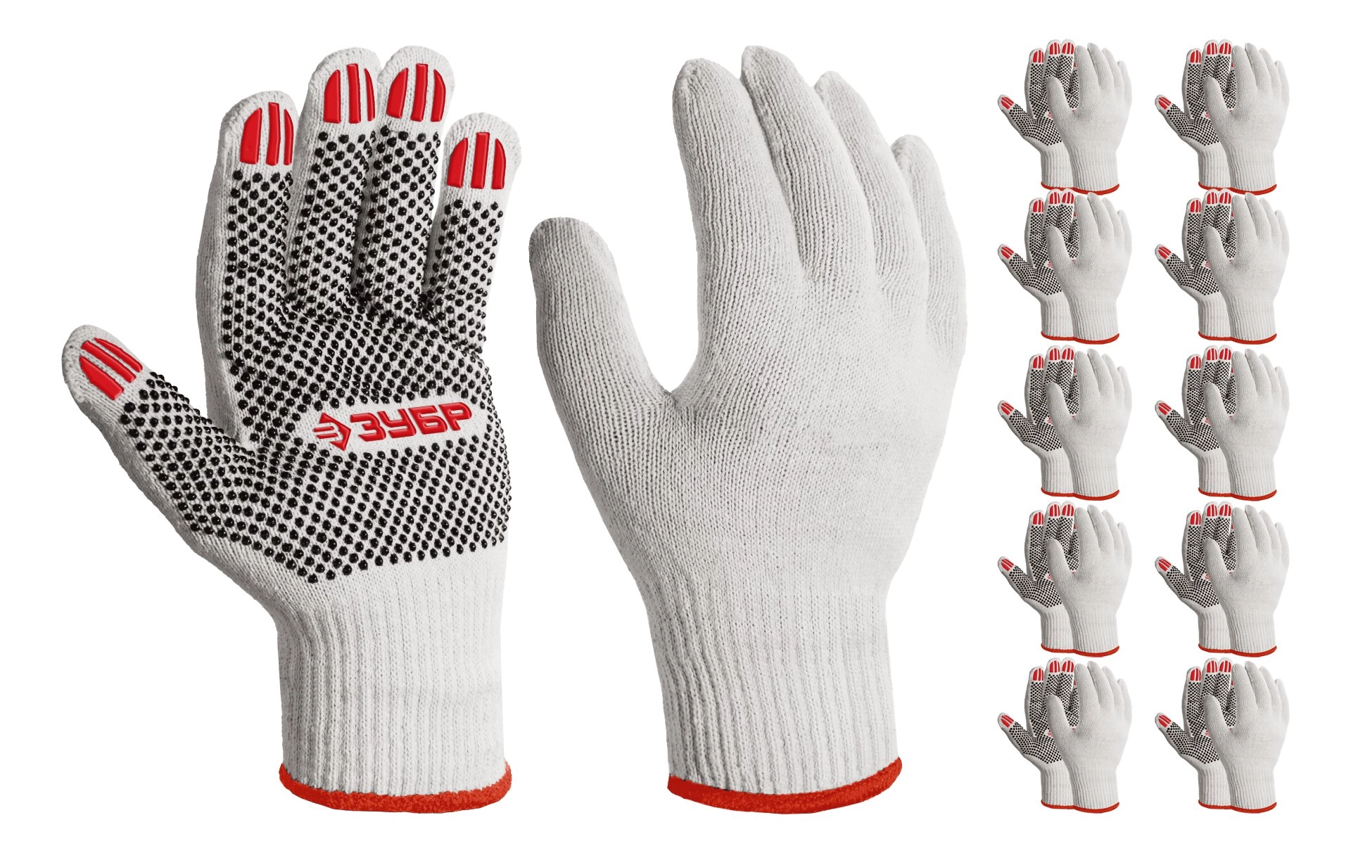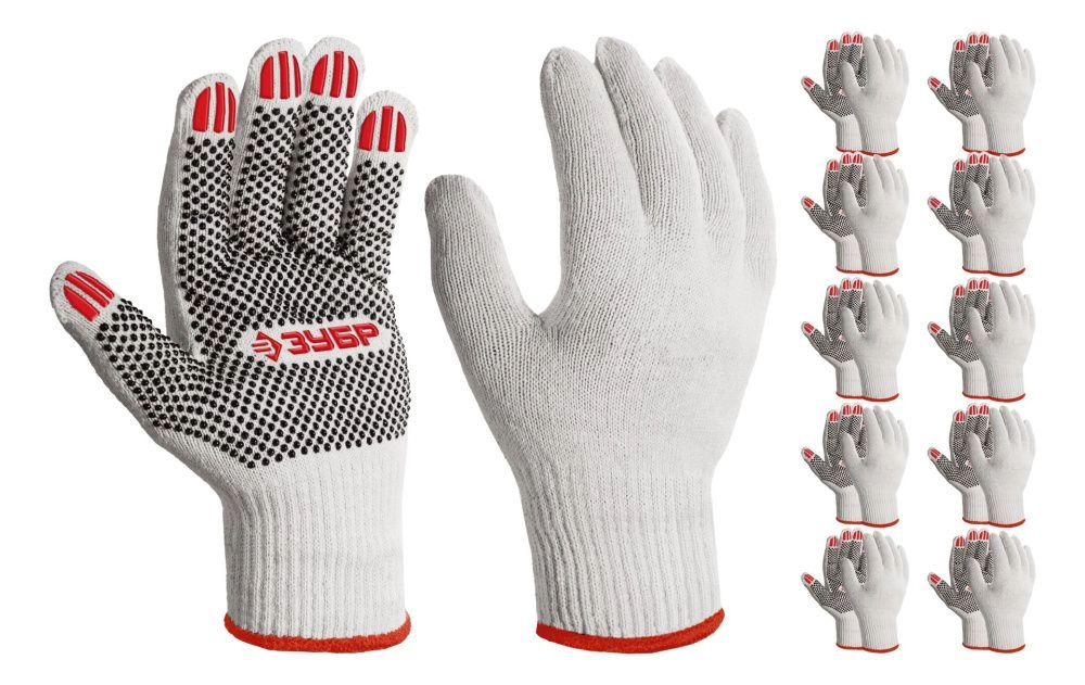 ПроизводителиПерчатки х/б с ПВХ покрытием (точка), 10 класс, размер M (8), 10 пар (11440-M10) ЗУБР