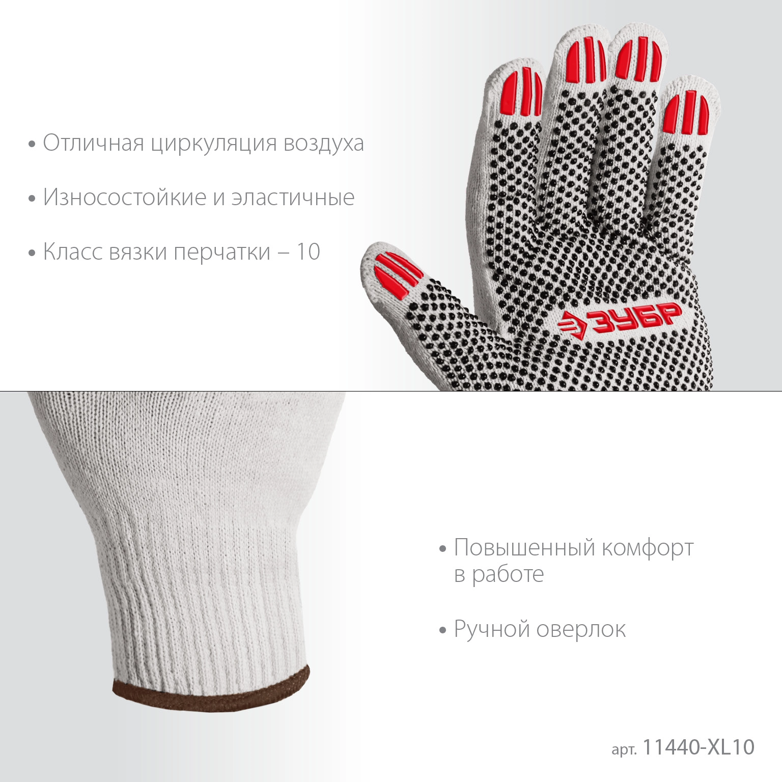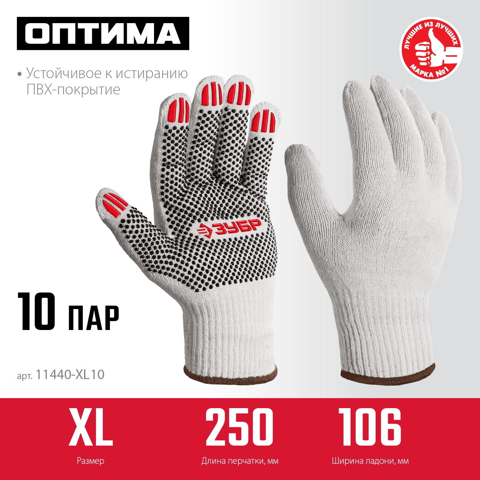 ПроизводителиПерчатки х/б с ПВХ покрытием (точка), 10 класс, размер XL (10), 10 пар (11440-XL10) ЗУБР