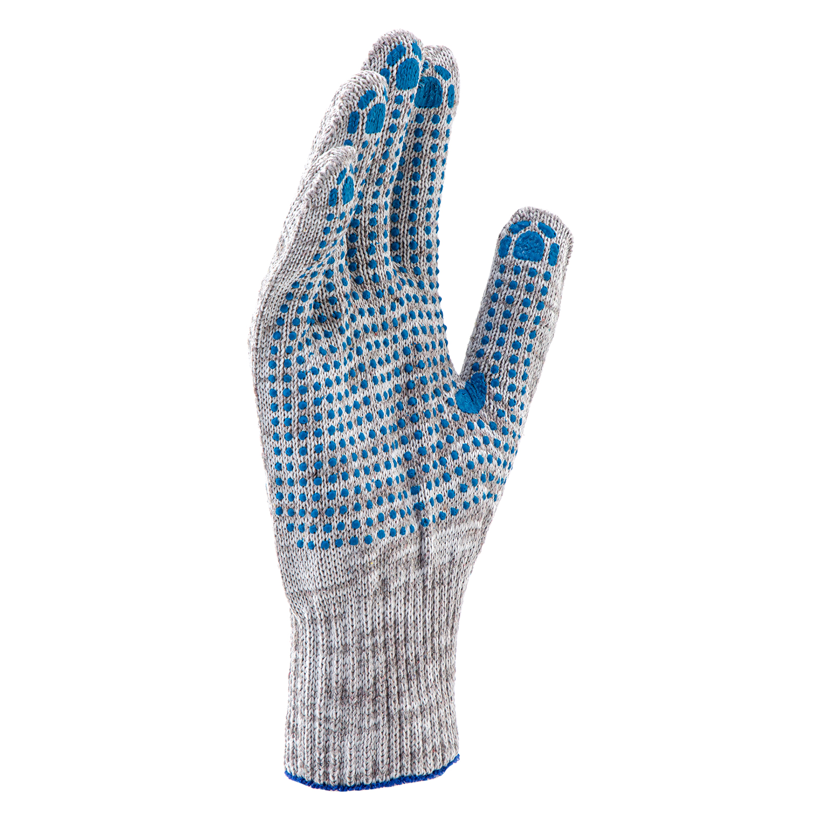 ПроизводителиПерчатки х/б, серые, ПВХ покрытие "Точка", 10 класс, серый меланж, 6 нитей (67815)