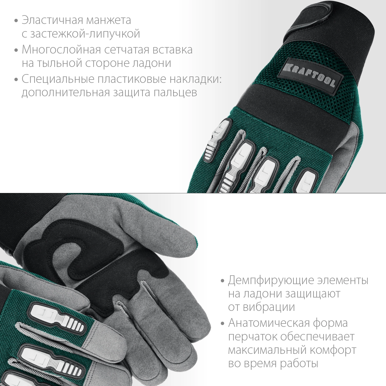ПроизводителиПерчатки комбинированные антивибрационные противоударные, размер XL (10)(11287-XL) KRAFTOOL