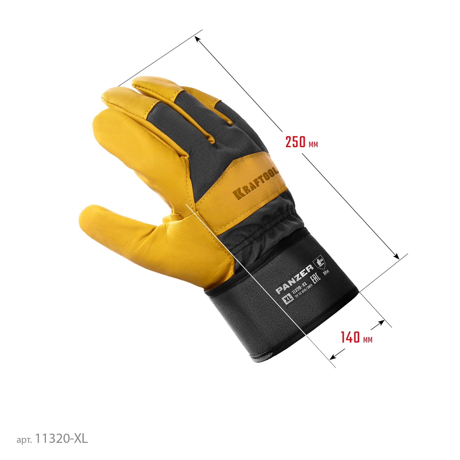 ПроизводителиПерчатки кожаные комбинированные, размер XL (10)(11320-XL) KRAFTOOL