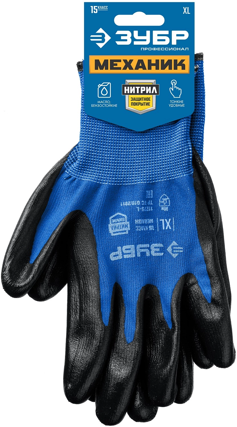 ХарактеристикиАртикул 11276-L_z01Бренды ЗубрСтрана производства РоссияМатериал покрытия нитрилРазмер LЗащита от истирания даЗащита от химии нетМасло- бензостойкость даЗащита от порезов нетУтепленные нетТип покрытия полный облив ладонной частиКласс вязки 15Количество, пар 1Вес 0.05Перчатки "ЗУБР" предназначены для защиты от общих производственных загрязнений и скольжения. Оптимальны при выполнении точных работ и работ с замасленными деталями.