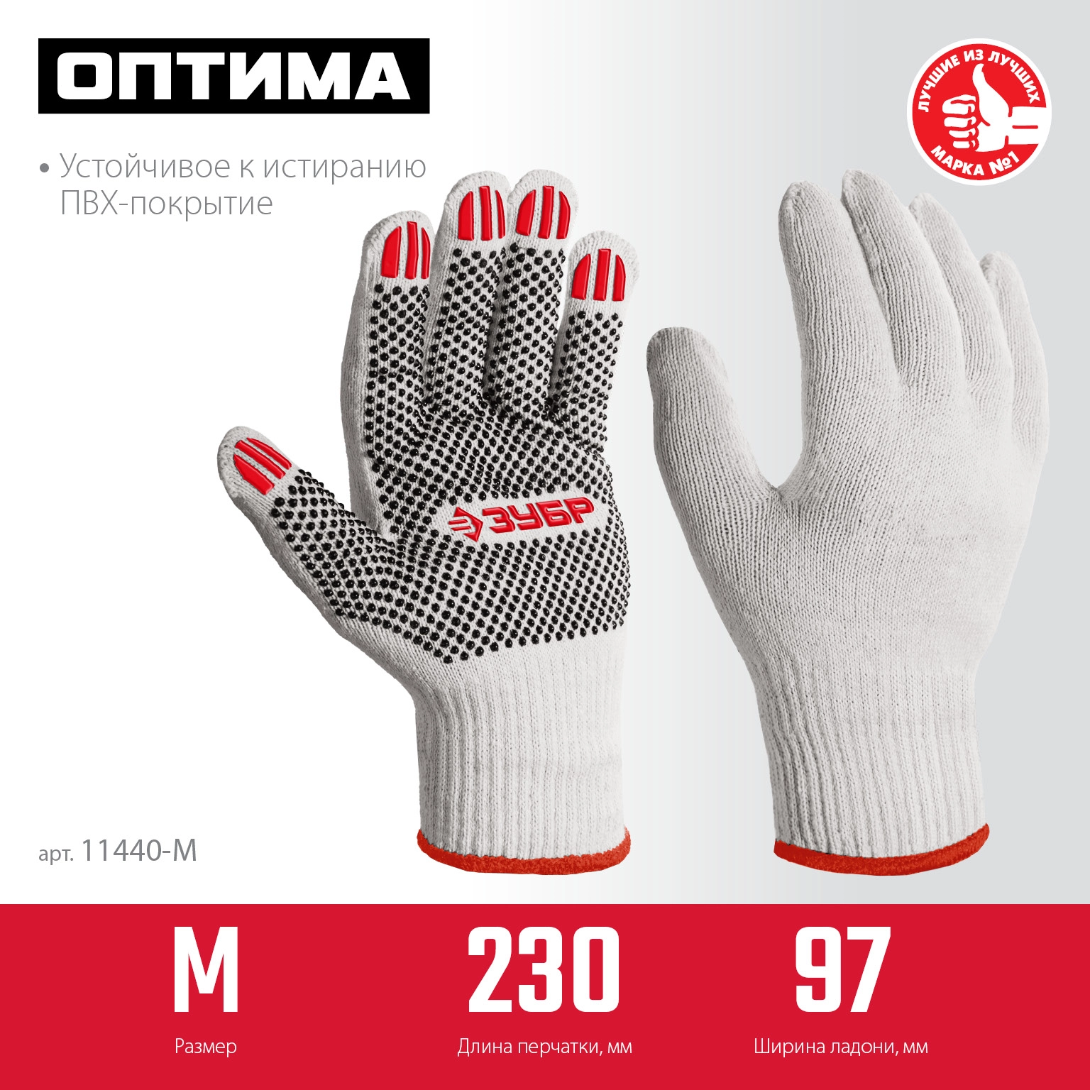 ПроизводителиПерчатки ОПТИМА, М 8, х/б перчатки с ПВХ покрытием (11440-M) ЗУБР