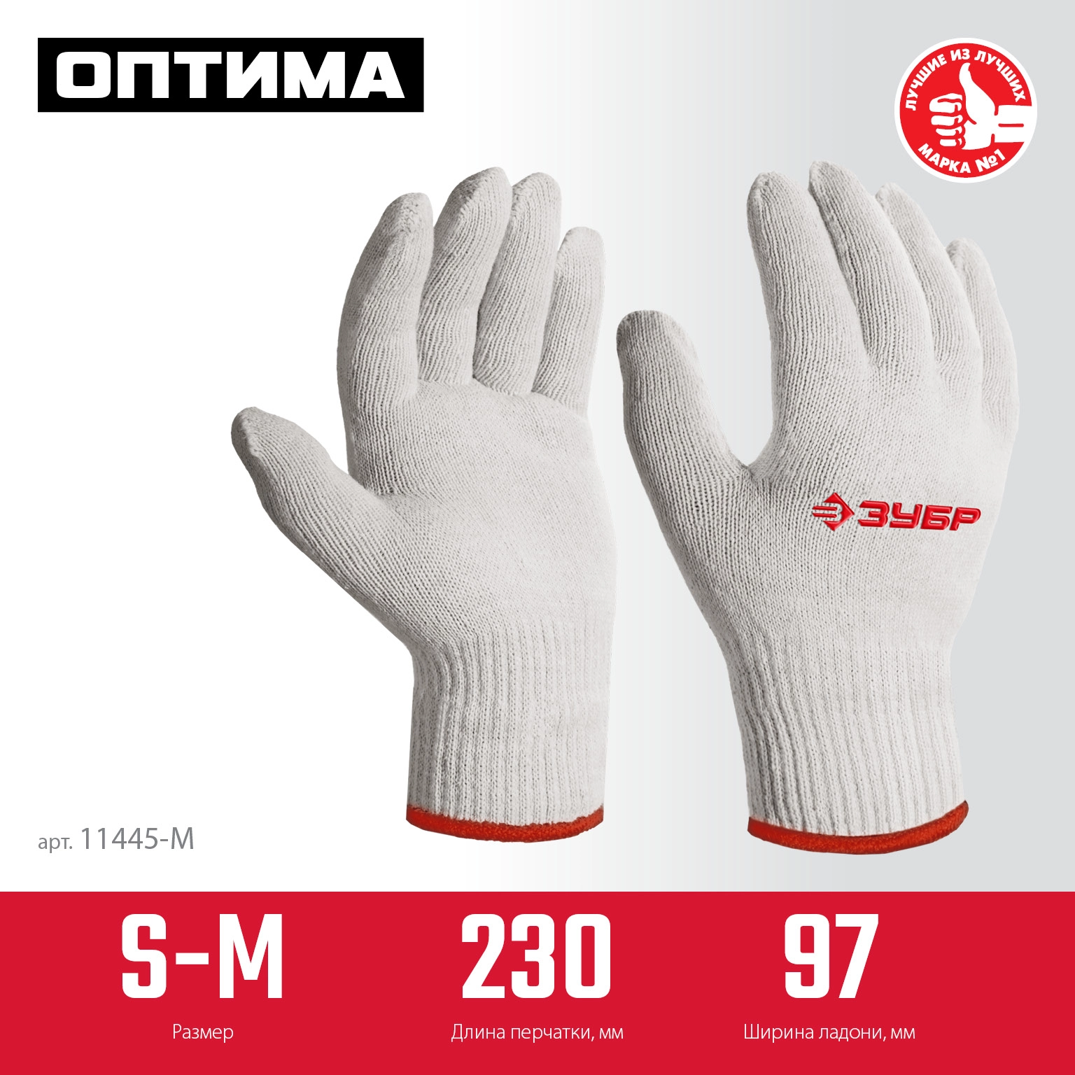 ПроизводителиПерчатки ОПТИМА, S-M, х/б перчатки без покрытия, 10 класс (11445-M) ЗУБР