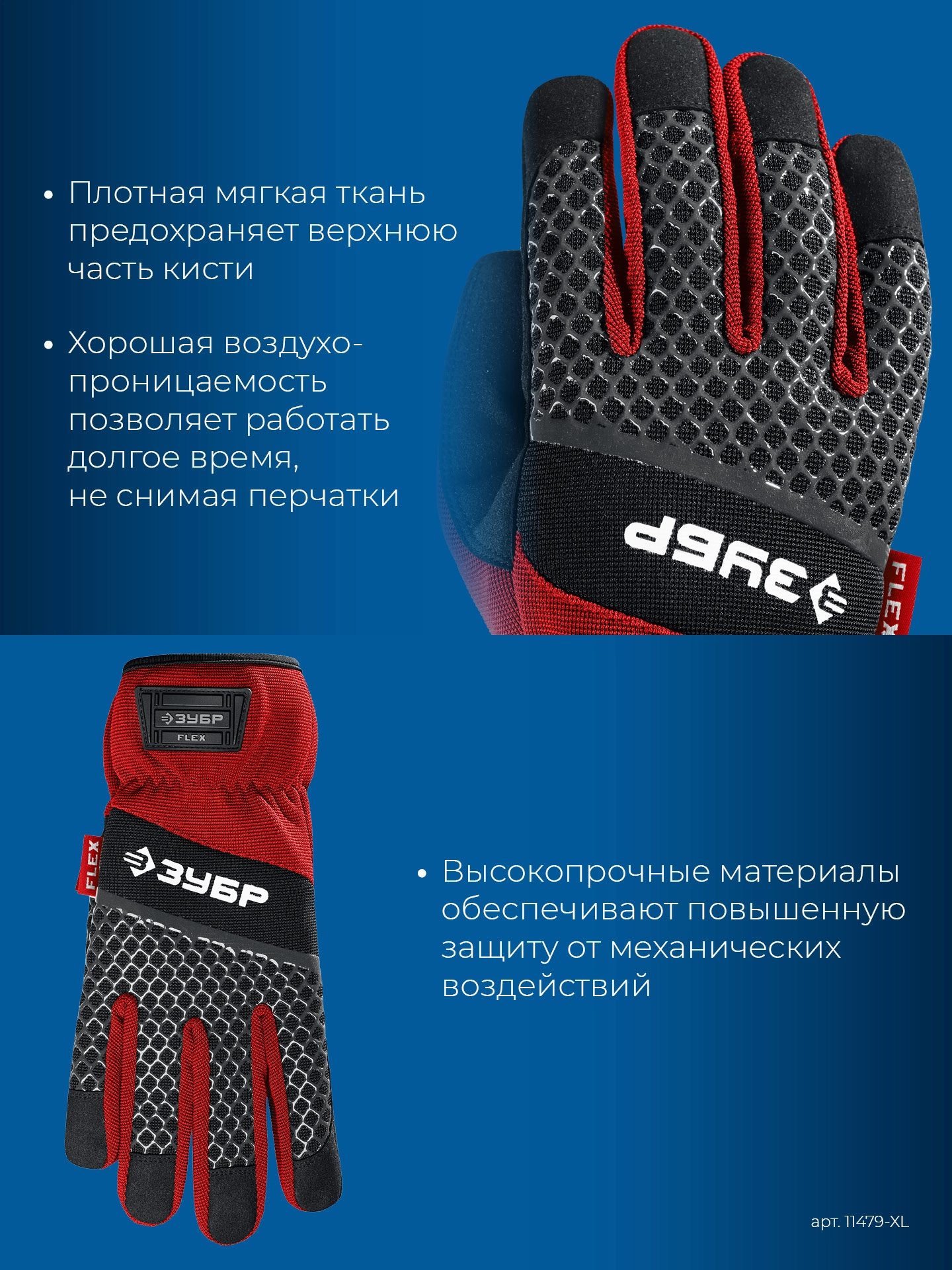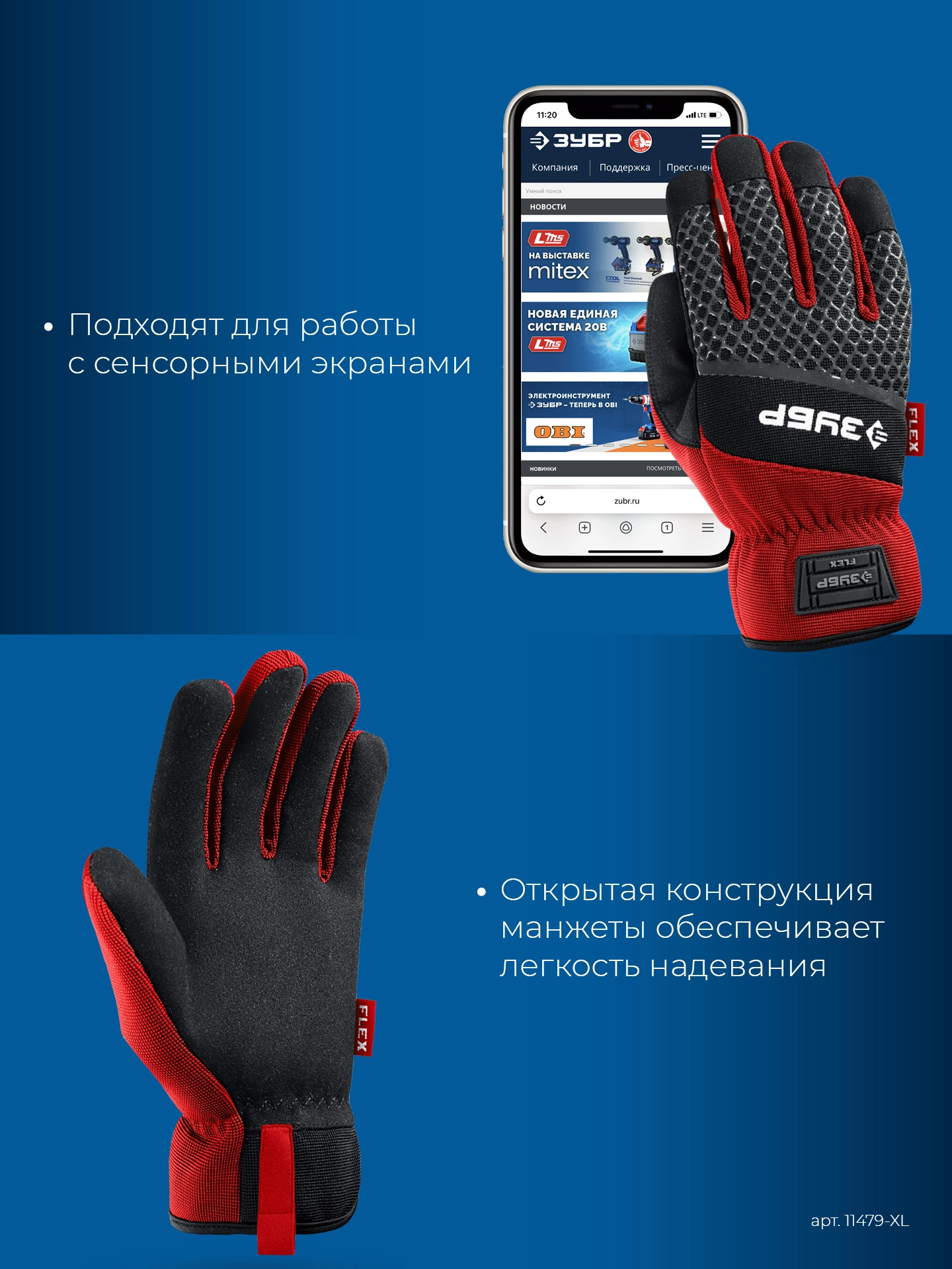 ПроизводителиПерчатки профессиональные комбиниров красные, работа с сенсорными экранами р.L 9 FLEX(11479-L) ЗУБР